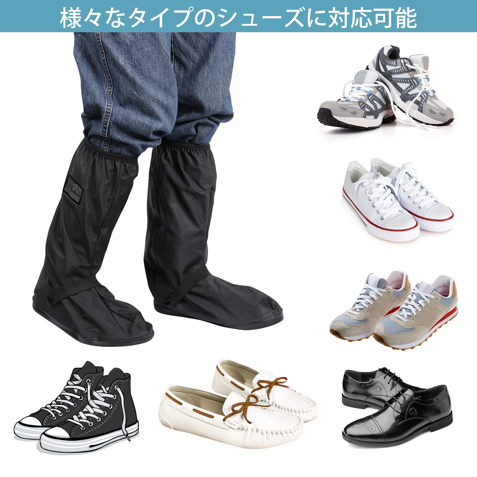 雨の日&雪の日最適:レインシューズカバーはPVC素材を採用して、浸水防止可能です。靴カバーを使って、靴が汚れにくいです。古い建物、科学研究機関、医療機関、ホテル、家庭などの場所で使用することができます。雨の日と雪の日は通勤、通学、作業などが靴保護です。