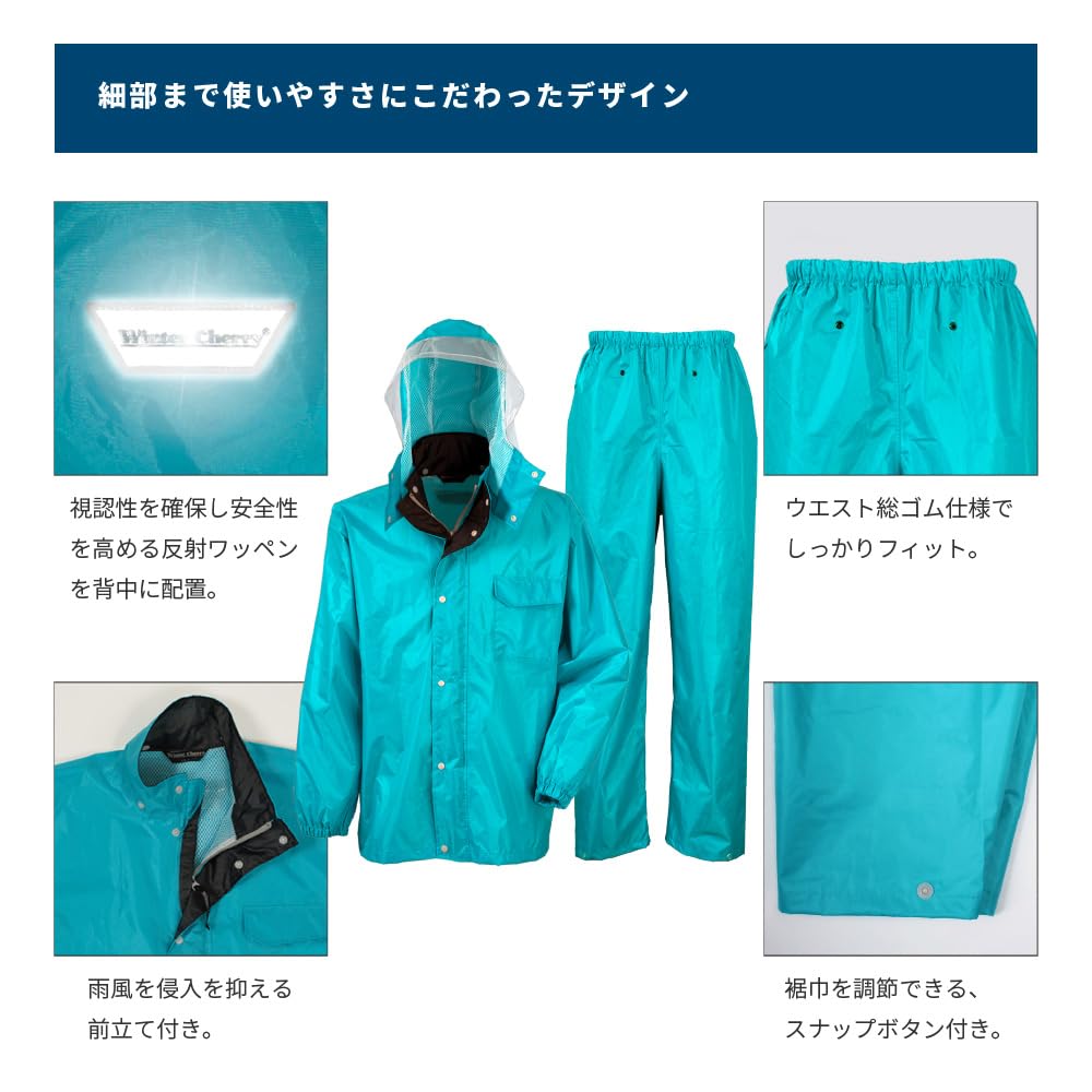 [ウィンターチェリー] レインウェア 上下セット 防水 総裏メッシュ ディフェンドレインスーツ メンズ