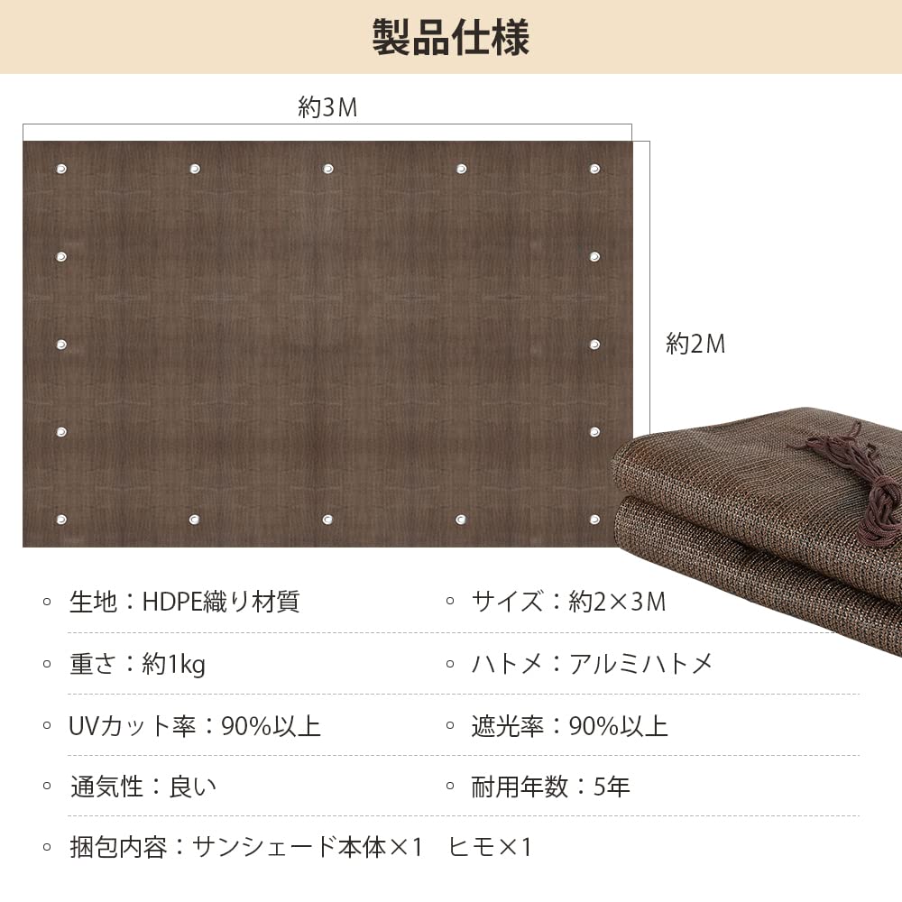 XiaZ 日除けシェード ベランダ 日よけスクリーン サンシェード オーニング 庭用サンシェード 外付け 家/廊下/庭下/屋外 バルコニーサンシェード ひよけ (モカ 2*3m)
