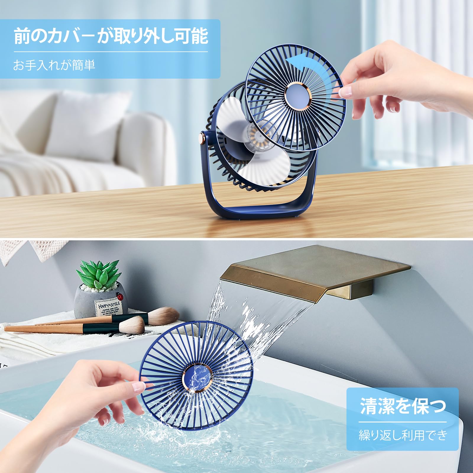 【2022最新】iNeibo 卓上扇風機 静音 小型 usbファン アウトドア オフィス 静音扇風機 1.5mUSBType-Cケーブル付き パワフル送風 360度角度調整 五段階風量調節 リズム風 長時間連続使用 「2400mAhバッテリー内蔵」 USBデスクファン 強力 省エネ 熱中症対策 軽量 家/学校/車/キッチン適用のUSB卓上扇風機 (Blue) | asaRulu0511