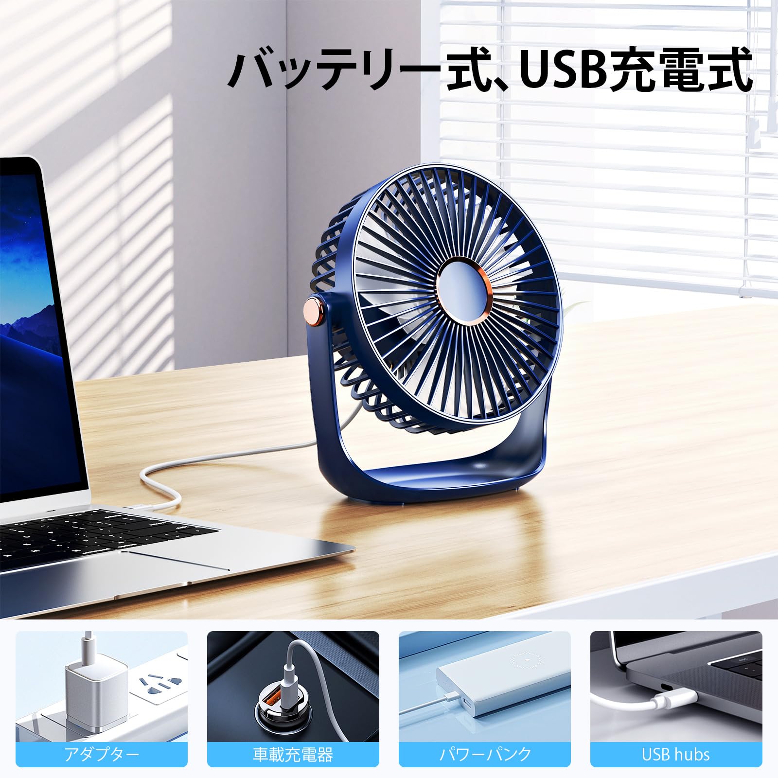 【高品質の静音小型卓上ファン・様々な場合も快適】弊店のデスクファン本体は高品質なABS樹脂でできており、衝撃に強く、耐久性に優れています。また、PCB回路の安全設計で、独立なリチウム電池を採用し、過充電過放電短路を回避し、安心してご使用いただけます。オフィス/家/学校/車/キッチン/アウトドアにも適用。