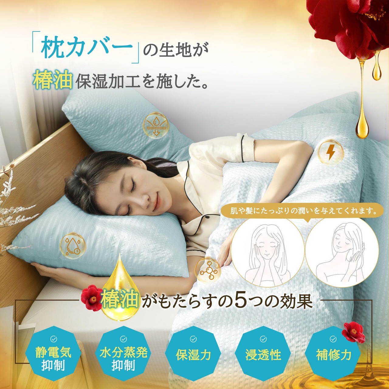 【椿油保湿・優しい肌触り】椿油は、非常に高い保湿力をもち、乾燥したお肌の角質層まで潤いを届け、つややかで弾力のある肌へ導きます。枕ガバーの生地が椿油保湿加工を施したため、優れた高保湿、防静電、皮膚再生保護の効果があります。やわらかな風合いとなめらかな肌ざわりが最高です!肌への刺激が少なく、肌が弱い人や子供にも使いやすい素材です。