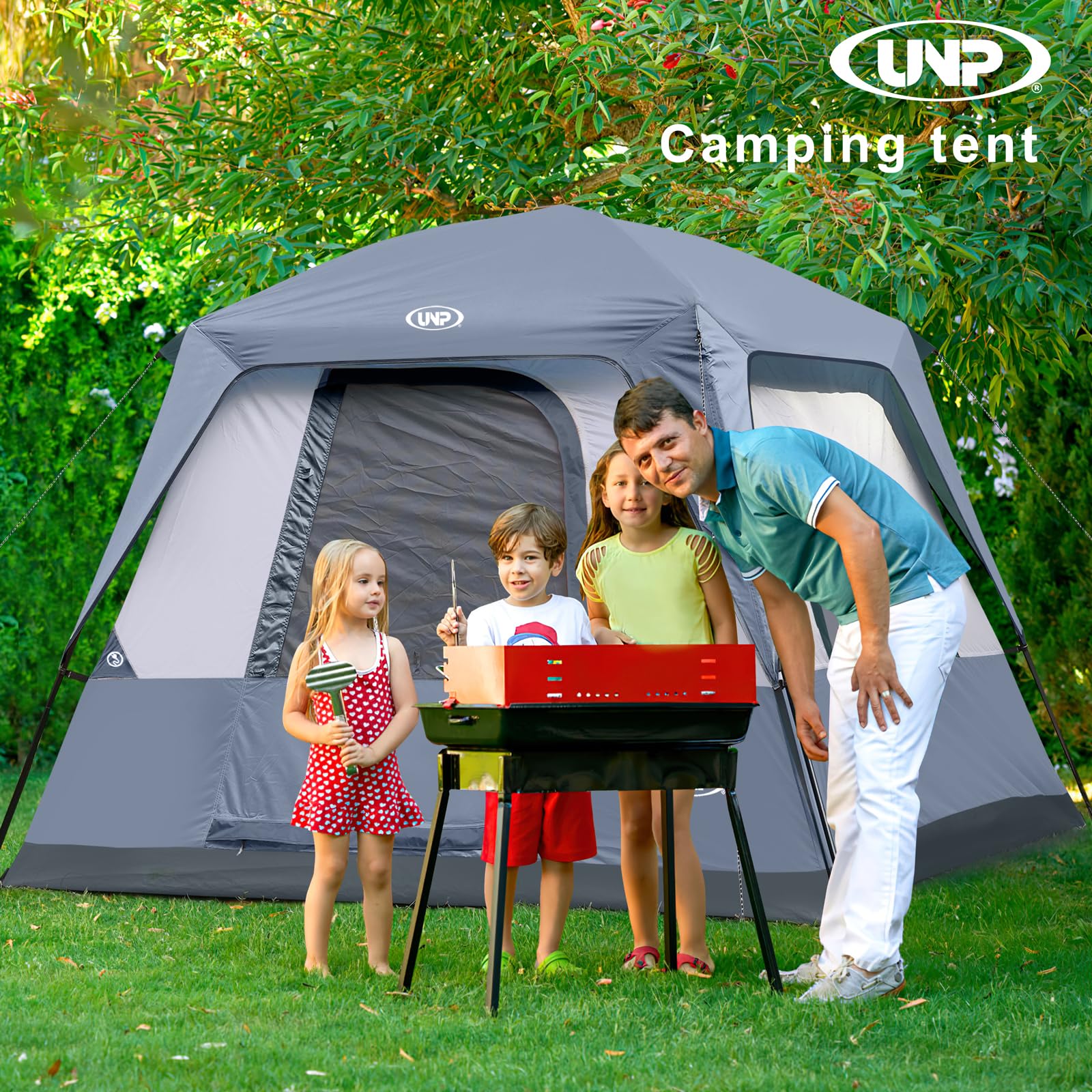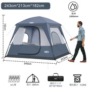 UNP キャビンテント 4人用 大空間 キャンプテント 簡単設営 防水加工&上部レインフライ付き 組み立て式 収納袋付き 登山/花見/防災用 サイズ :243cm×213cm×182cm