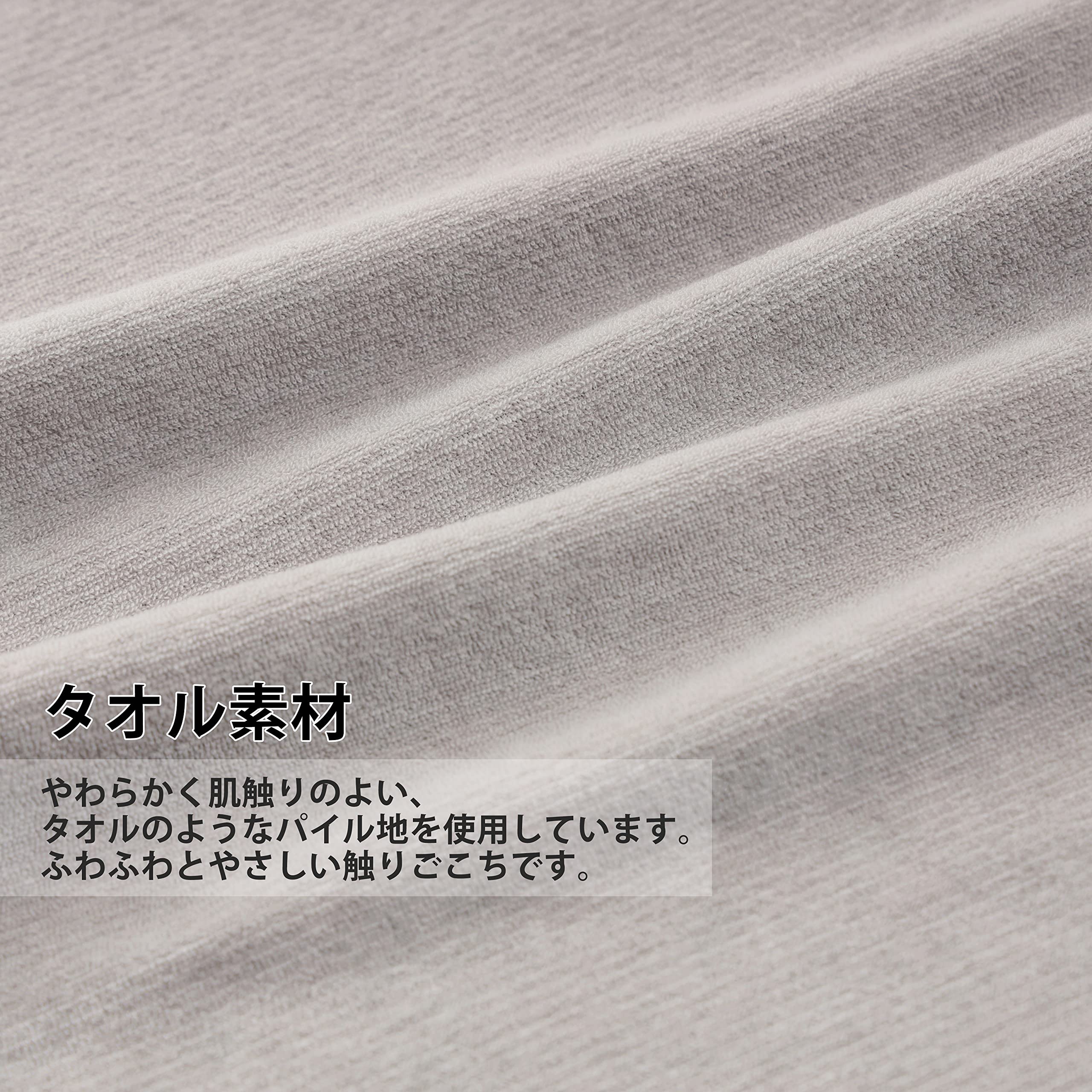 【枕カバー 素材】様々な枕に使えるのびのびタイプ。パイル部分はポリエステル65%と綿35%。グランド部分はポリエステル100%です。綿とポリエステルの2層構造。糸は速乾性に優れた糸です。タオルのような肌ざわり。
