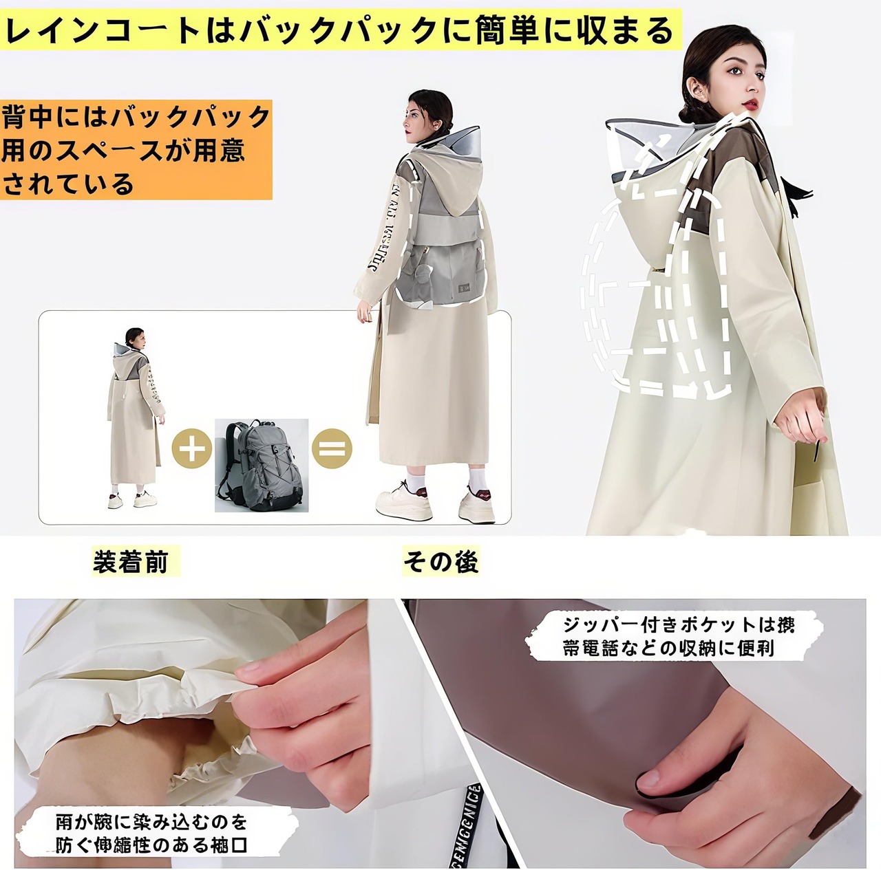 【トリプルデザイン】 当社の雨合羽がはトリプルデザインを採用し、ウインドブレーカー、レインコート及び突撃服の利点を一身に集め、単独で着用してファッションの風格を見せることができ、またレインコートとして悪天候に簡単に対応することができ、レインコートを大きくすると頭部の輪郭にフィットし、つばの深さが適度で、風雨を遮ることができ、裾のデザインを長くすることができ、風雨の天気の中で着用者の足を保護し、雨に濡れないようにすることができ、ベルトを束ねると腰の緩みを調節し、修身効果を高め、異なるシーンと需要を満たすことができる,自転車 原付におすすめ!リュックを背負ったまま着れる!後部には特殊なデザインが使用されています、リュックを背負ったままでも自転車をこいいただけます