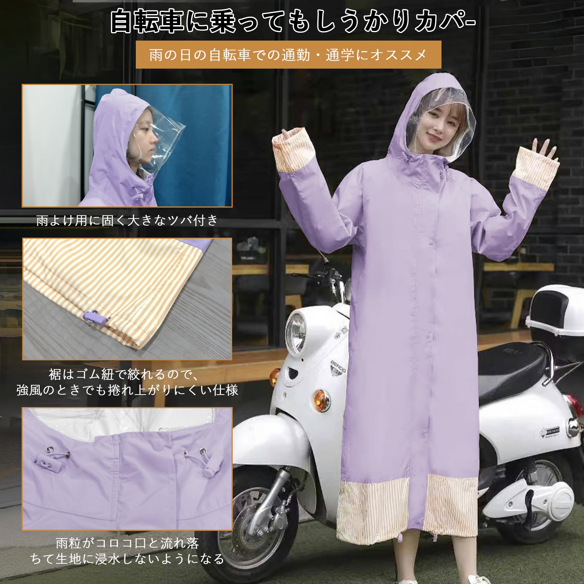 [YAMANMAN] レインコート レディース ロング丈 リュック対応 通勤 通学 自転車 レインウェア