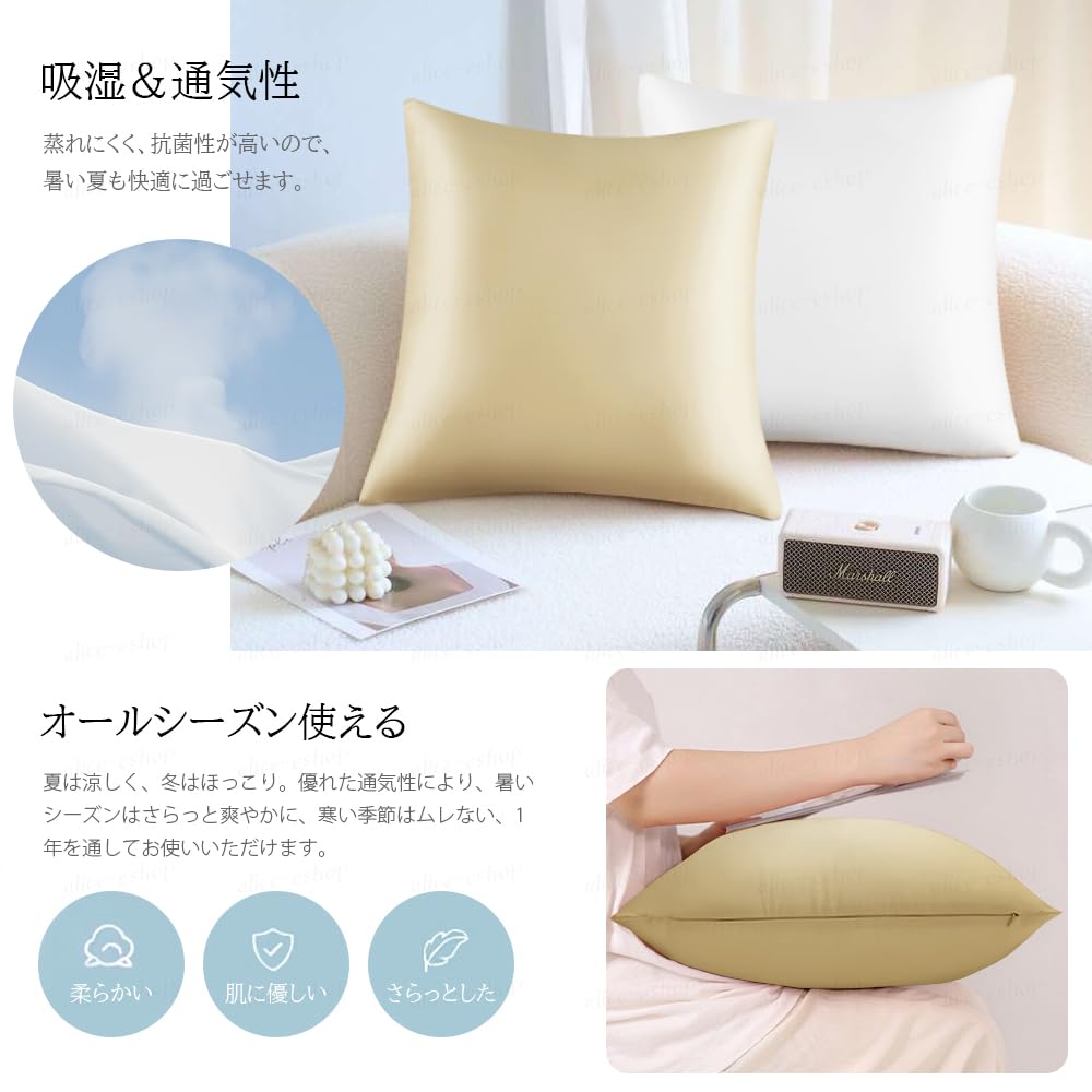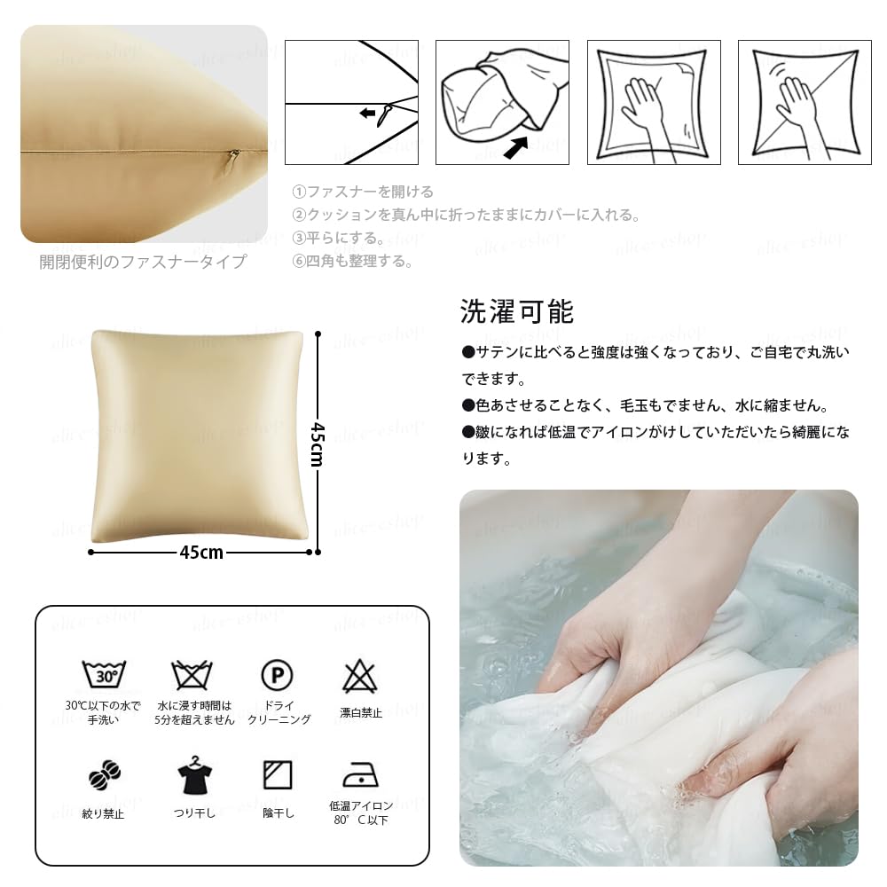【在庫処分】「§zz.luxi」クッションカバー 2個セット 45*45cm シルクみたい おしゃれ ツルツル 冷感 夏 吸湿 通気性 サテン ツヤ 光沢 潰れない 可愛い ソファークッション 枕 北欧 着脱簡単 肌に優しい 柔らかく ふわふわ 洗える 昼寝 抗菌防臭 防カビ(カッキー) | asaRulu0511