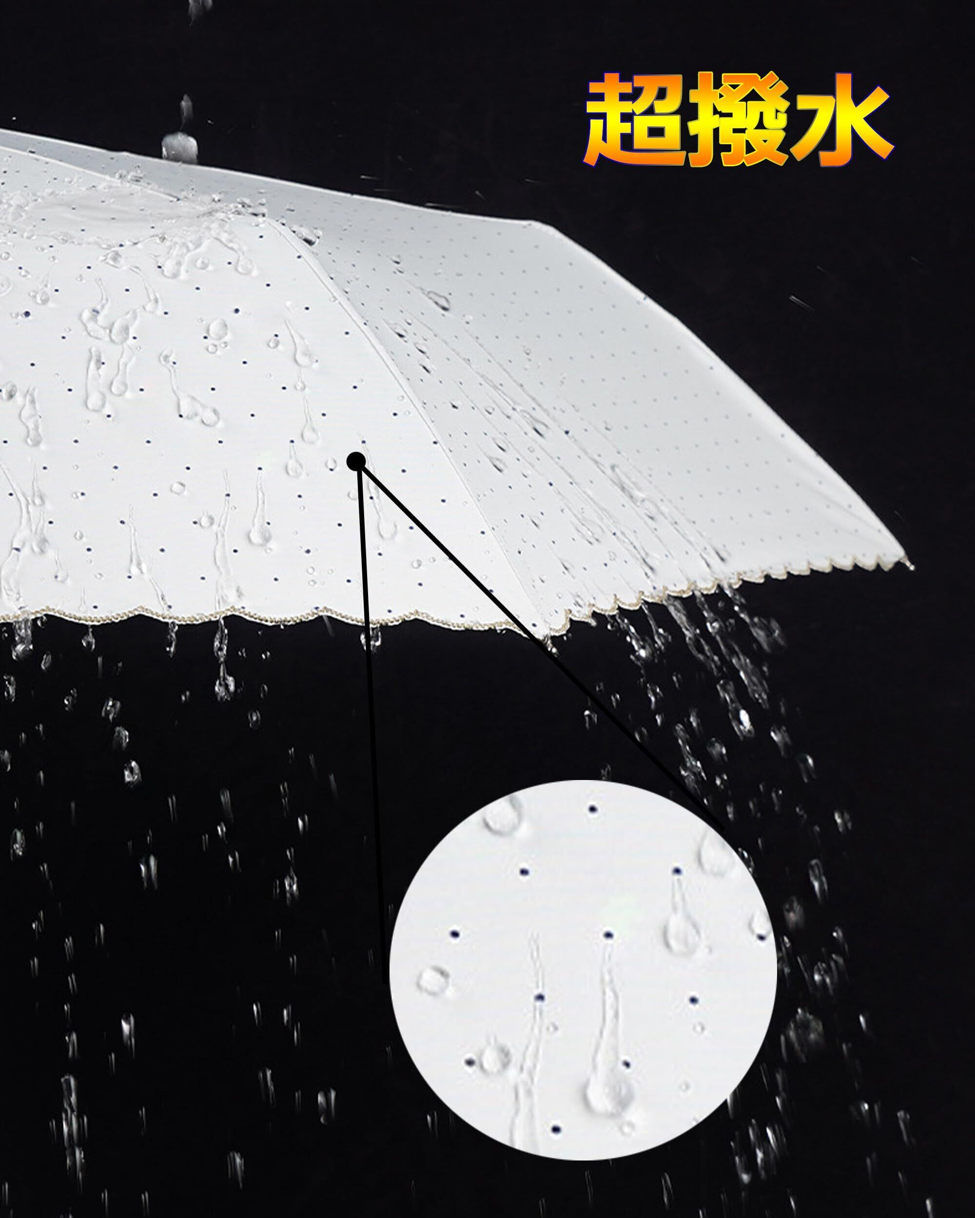 【晴雨兼用・撥水加工】高密度高撥水テフロン加工が施されており、雨水が染み込まずにしっかり弾くので、軽く振るだけで雨水を振り払えます。日傘としても雨傘としてもご利用いただけます。傘表面は210T高密度生地を使用し、防水性、撥水力が抜群なテフロン塗膜加工を施しました。撥水性に優れ、軽く振るだけで雨水が滑り落ちます。公共施設に入る際や、電車乗降の際にとても便利で、周りに迷惑掛けないので、安心で使えます