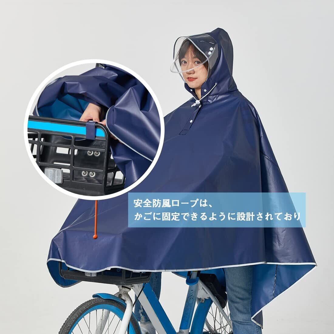 [Facecozy] 男女兼用 レインコート 自転車 二重ツバ 自転車用 レインコート レディース 反射テープ付きレインポンチョ 防水レインポンチョ 長いポンチョ 梅雨対策 耐久性 軽量 レインコート 雨合羽 サイクル仕様 通勤通学 、収納袋付き