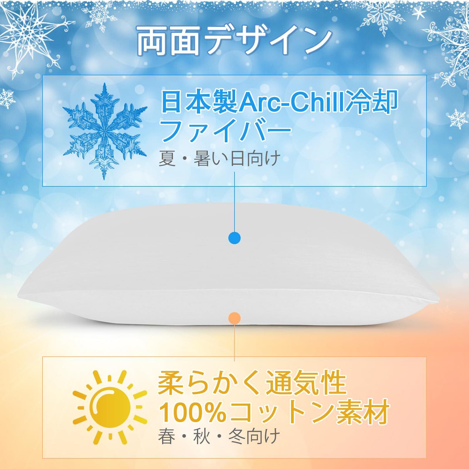 【アークチル冷却技術で夏の快眠をサポート】 特殊な日本製Q-max>0.45アークチル冷却ファイバーを使用した夏用枕カバー。OEKO-TEX 100認証取得で安心。肌が触れた瞬間に体熱を吸収し、体感温度を最大5℃以上低下させます。熱帯夜や寝汗に悩む方に最適なひんやり冷却効果で、夏の寝苦しさを解消