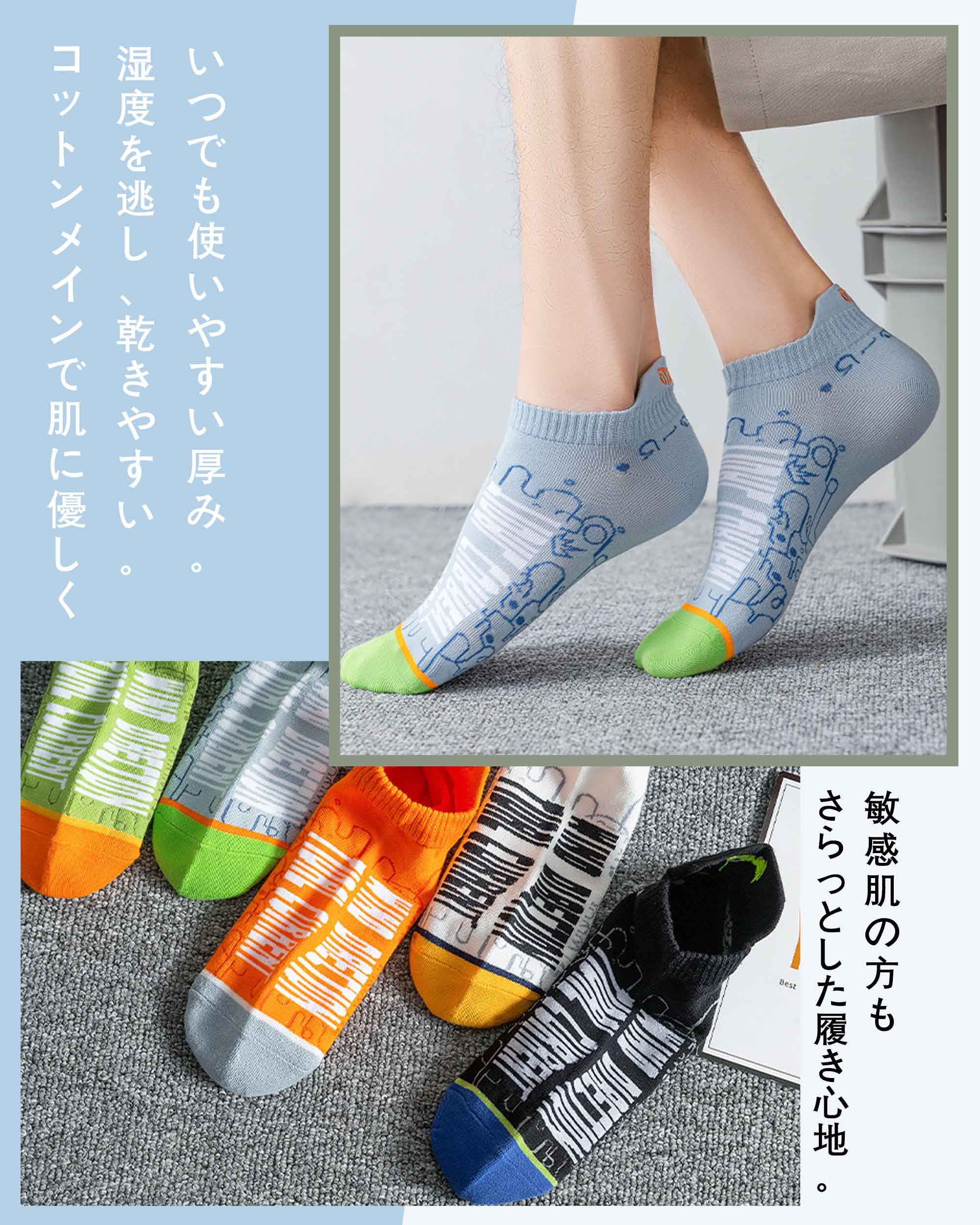 [Haomaomao] 靴下 メンズ 春夏 ソックス 浅履き口 脱げない靴下ショートソックス カラフルソックス スニーカーソックス 吸汗 滑り止め 蒸れない 耐久性 通気性 メンズ 抗菌防臭
