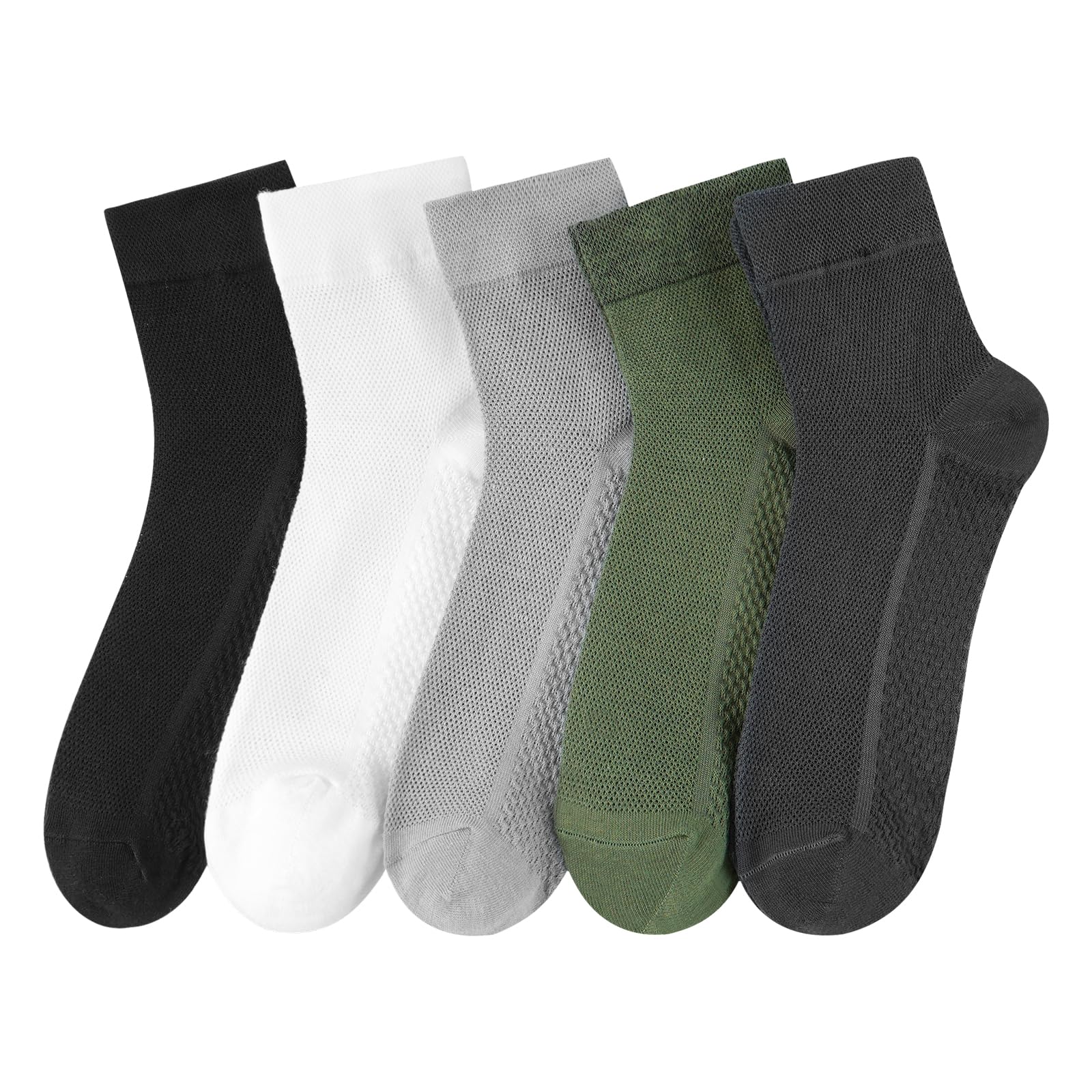 [Yazon] 靴下 メンズ 夏 メッシュ スポーツソックス 綿薄手 蒸れない靴下 男性 カジュアルソックス クルー丈 紳士用 くつした スポーツ 無地 おしゃれ ビジネスソックス 通気吸汗 24-27cm 夏用5足セット