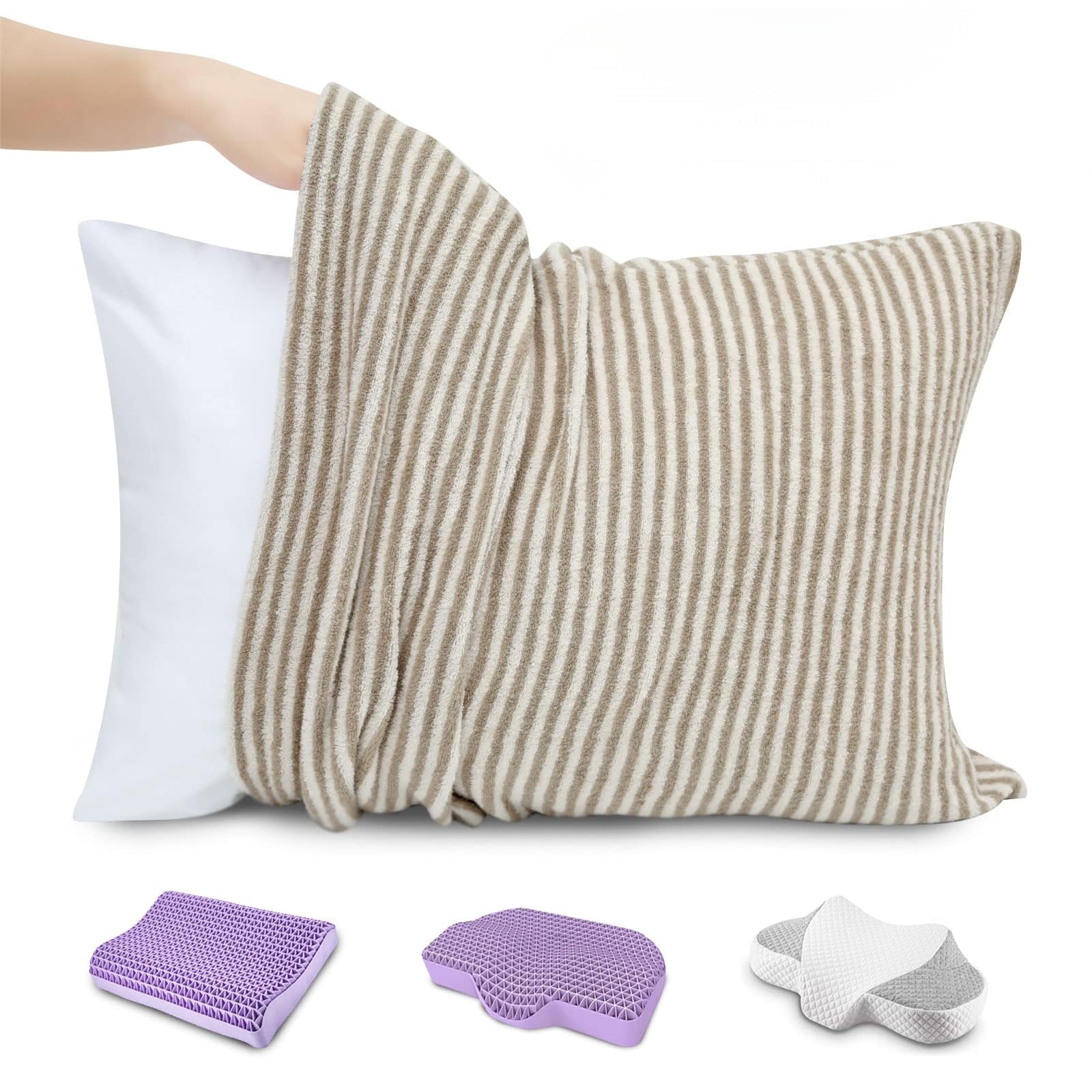 【伸縮性抜群·様々な枕に使用できる】パイル部分:綿100%、グランド部分:ポリエステル95% ポリウレタン5%。枕カバーは、幅40~50cm、長さ60~70cm。両端が閉じていて、伸縮性のある素材でできており、波状枕、枕、変形枕など、さまざまな形の枕に適しています。