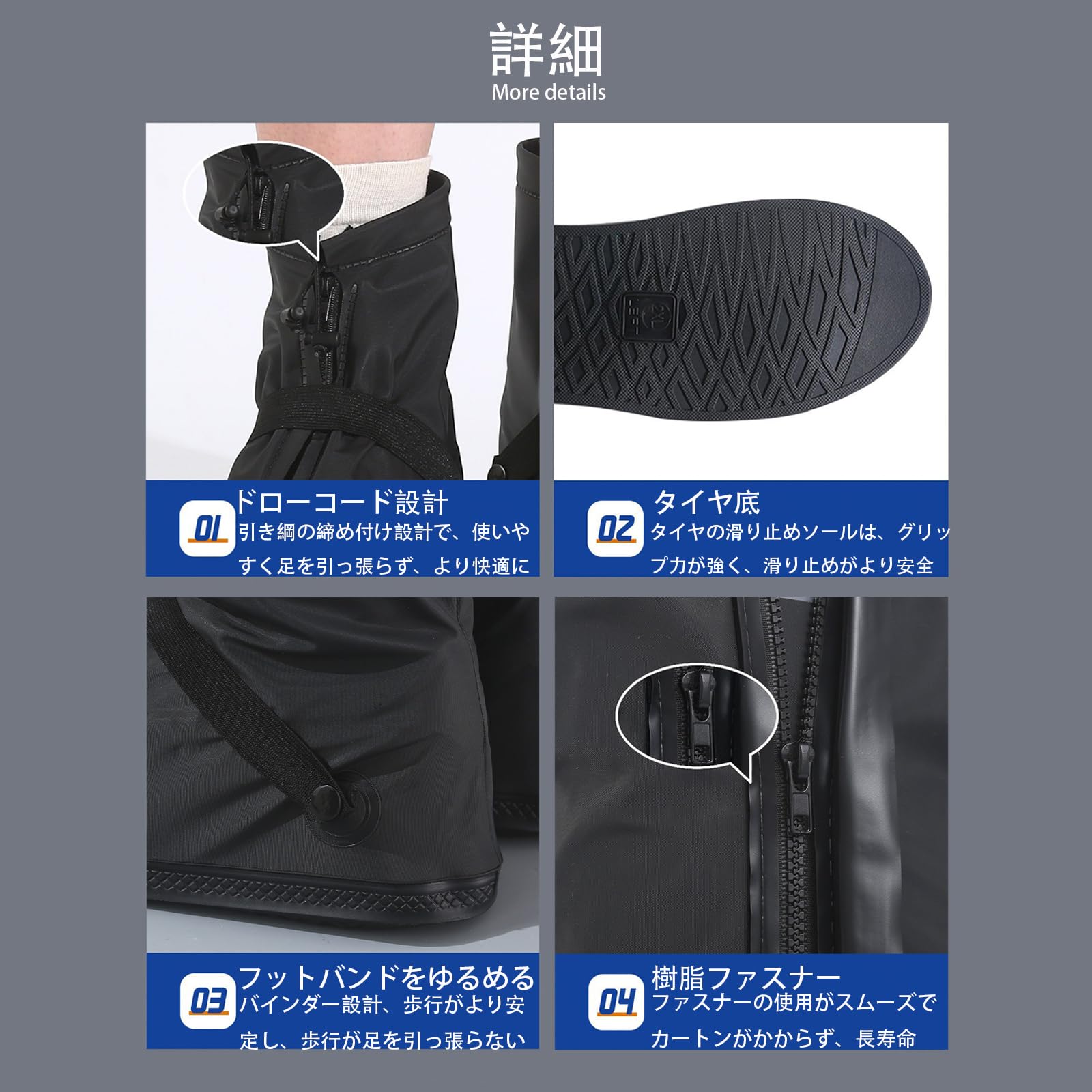 【滑り止めソール】ソールは凹凸の模様が付いた丈夫なゴム製のタイヤ止めソールなので、グリップ力が強く、摩耗&滑り止めの性能を高めます!雪の積もった道、濡れた道も滑りにくい。また、靴底側面プレス製法で靴全体を包囲し、使い捨て靴セットよりも耐久性があり、長持ちしない欠点を補った。
