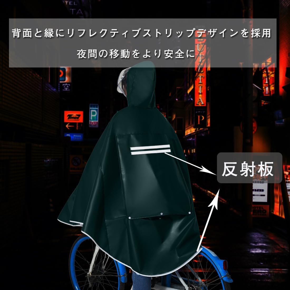 [Facecozy] 男女兼用 レインコート 自転車 二重ツバ 自転車用 レインコート レディース 反射テープ付きレインポンチョ 防水レインポンチョ 長いポンチョ 梅雨対策 耐久性 軽量 レインコート 雨合羽 サイクル仕様 通勤通学 、収納袋付き