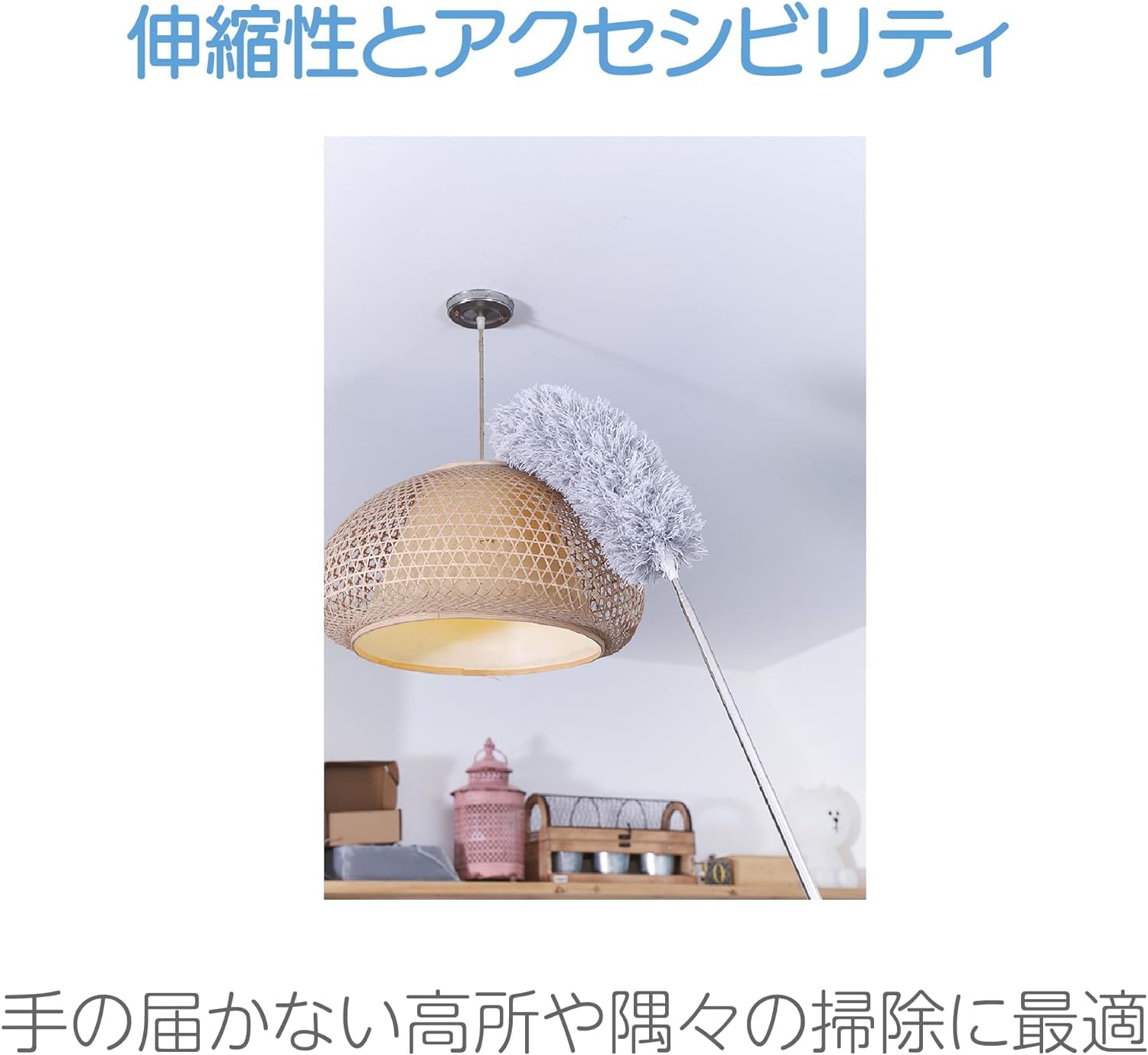 【伸縮性とアクセシビリティ】 最長280cmまで伸ばせるロングモップは、手の届かない高所や隅々の掃除に最適です。エアコン、天井、高い棚など、普段手が届かない場所の掃除が脚立なしで簡単に行えます。この便利さは、家庭用はもちろん、業務用や車の屋根清掃にも活躍します。