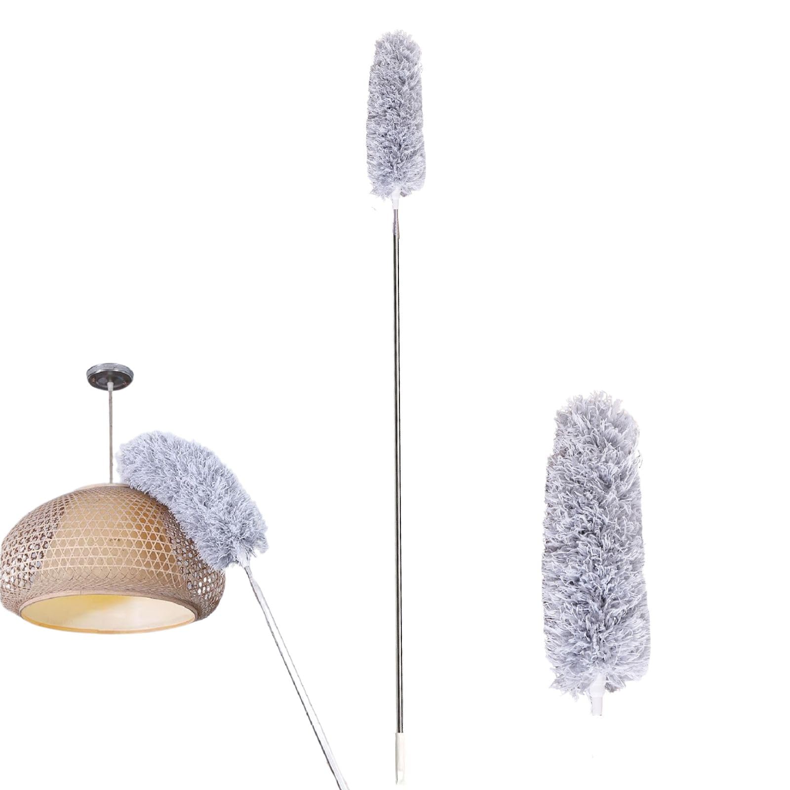 HAPPY SUGAR 高所モップ ロングモップ ハンディモップ 蜘蛛の巣取り棒 洗車モップ ほこり取り 壁 ホコリ取り 高所 掃除 隙間 (モップ+替えモップヘッド2個セット)