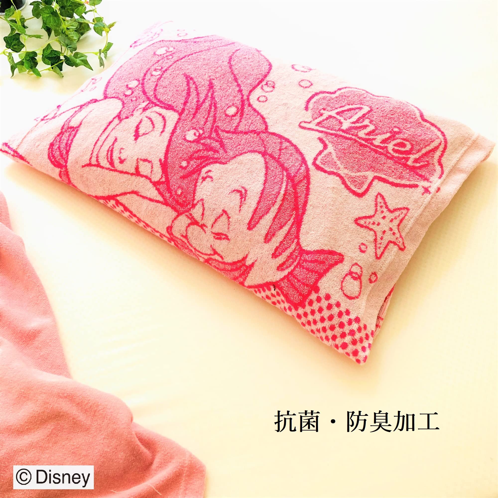 MORIPiLO ディズニー 枕カバー 抗菌防臭 (アリエル フランダー 親子で使えるピローケース) タオル地 のびのび 伸縮タイプ ピンク 43x63 35x50cm兼用 グッズ ぬいぐるみ カバー 可愛い 柔らかめ 筒形 Disney キャラクター まくらのモリシタ