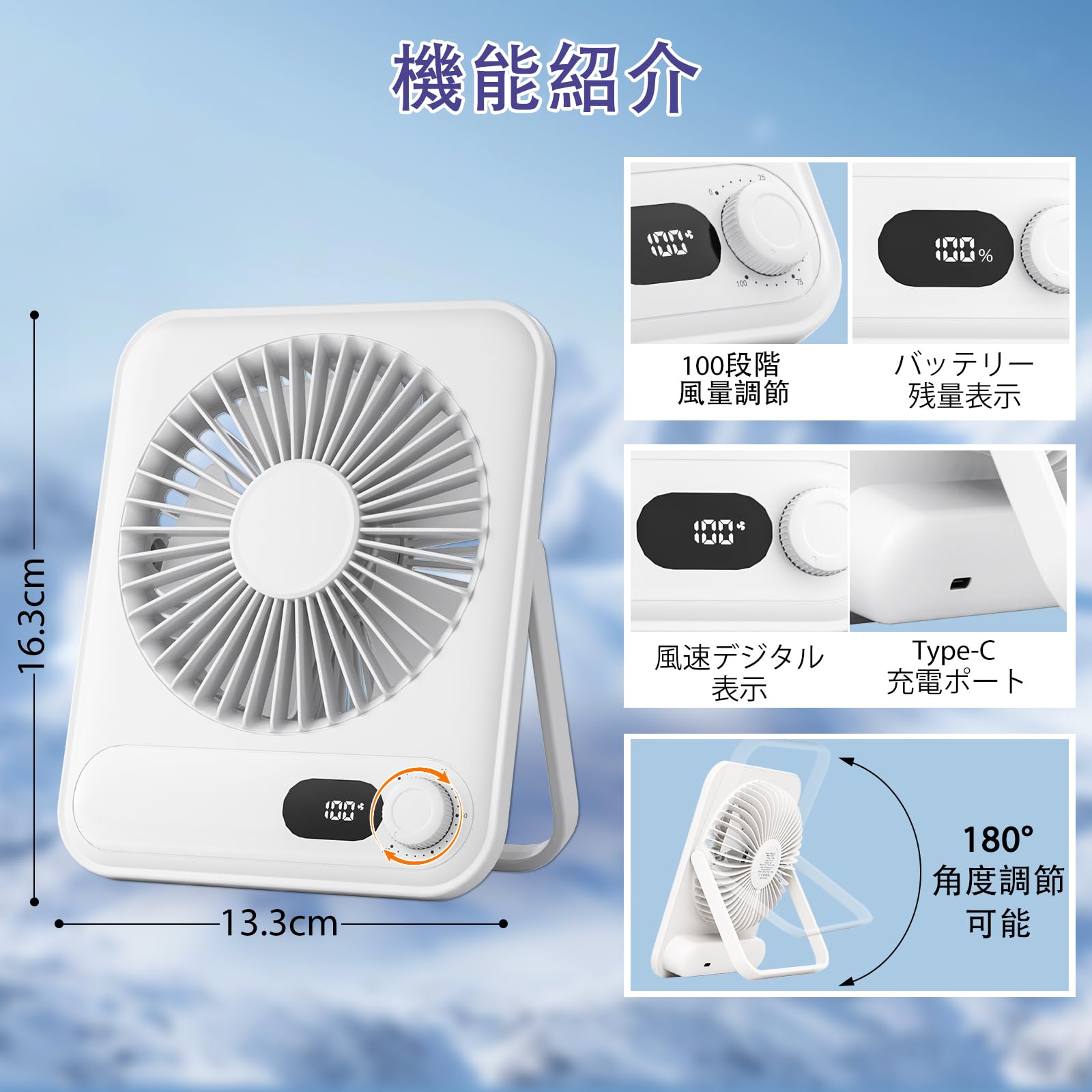 卓上扇風機 小型 静音 2025升级款充電式卓上ファン 5000mAh大容量 電量&風速表示 100無段階風量調節 強力ブラシレスモーター Type-C急速充電 USB扇風機 コンパクト オフィス/寝室/キャンプ/アウトドア デスクファン ミニ扇風機 熱中症対策