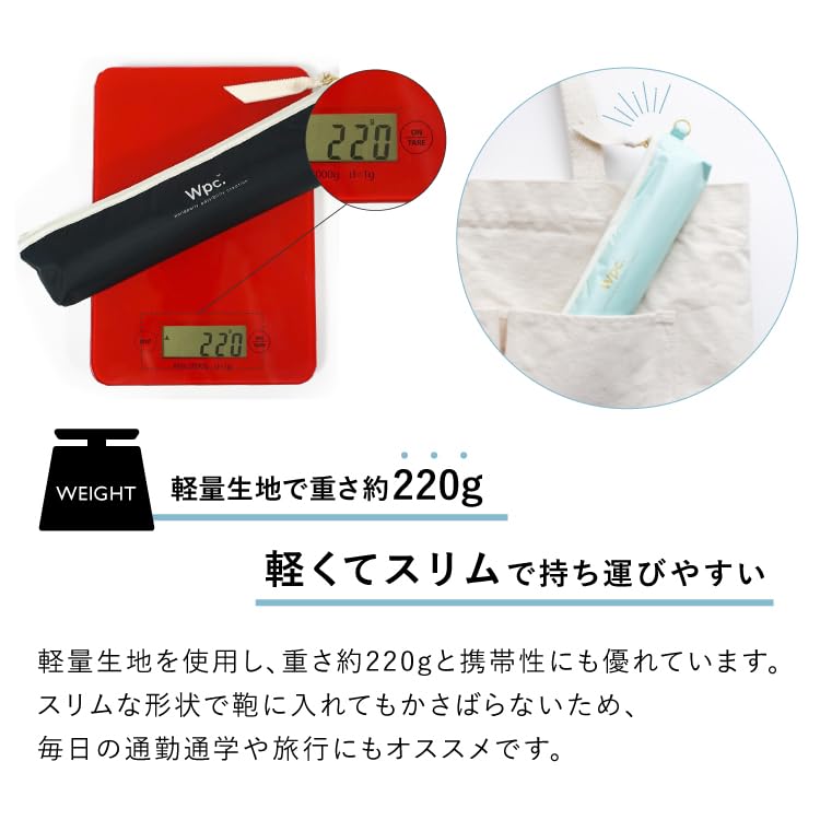 雨の日も晴れの日も使える、スリムでコンパクトなミニパラソル。傘としての機能はもちろん、ケースやリボンの色・かたち、ハンドルの素材など、色と機能にこだわりました。 軽量生地を使用し、重さ約220gと携帯性にも優れています。