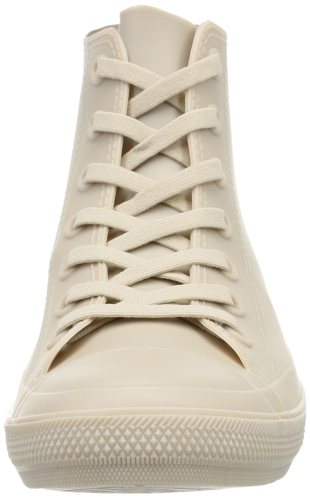 ハイカットスニーカーデザインのレインシューズが登場。足首周りをタイトに仕上げる事で雨の侵入を防ぐのはもちろん、スカート、パンツなどボトムスを選ばないスリムなシルエットがポイント。柔らかい素材を使用しているので屈曲性もあり、足の動きにフィットし履き心地も抜群。ゴム紐のシューレースで着脱しやすく、ワンカラーで揃えたベーシックなデザインで様々なコーディネートにも合わせやすい1足。