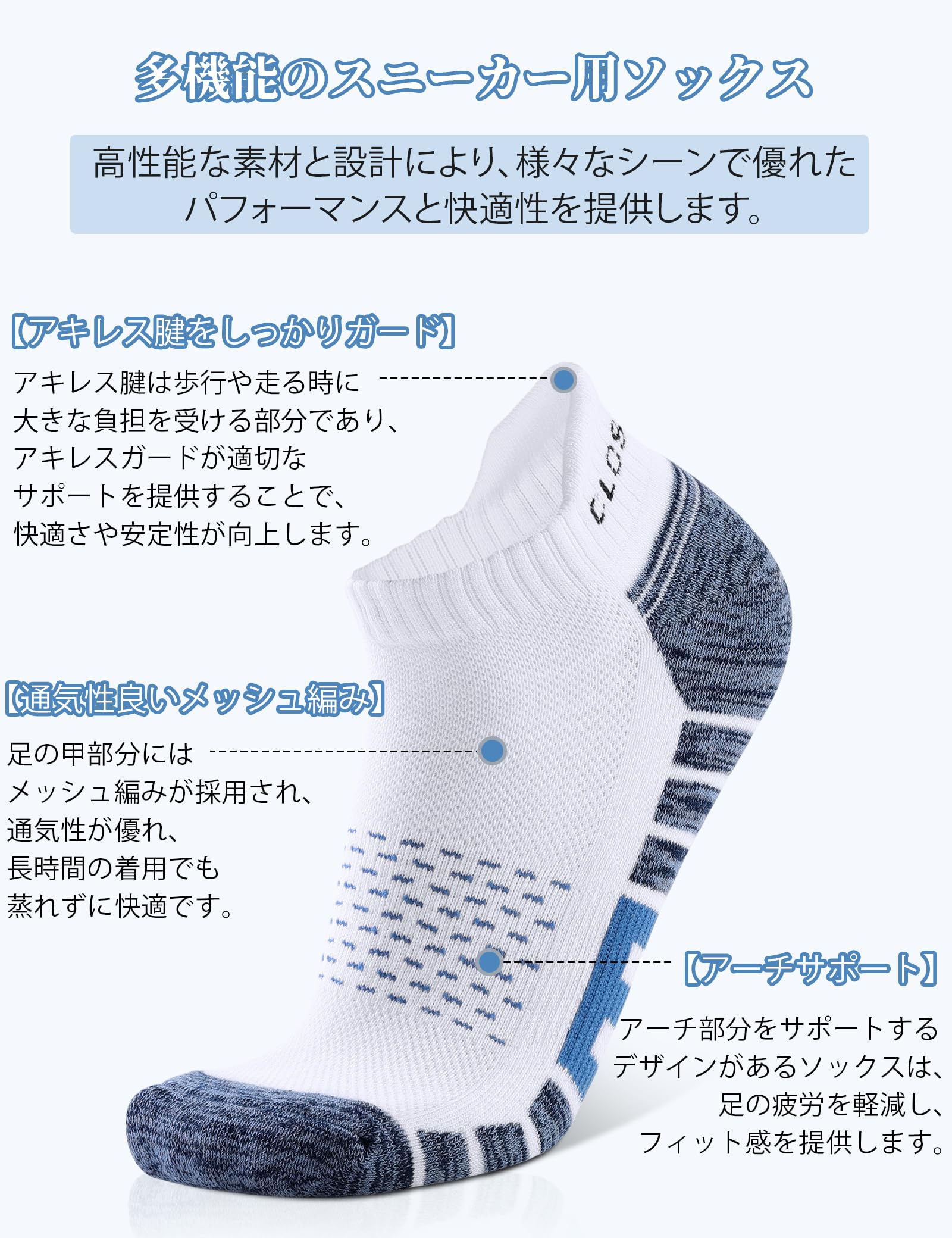 [CLOSEMATE] ソックス メンズ 靴下 スポーツソックス 蒸れない 防臭吸汗 スニーカーソックス 通気耐久 アウトドア 四季用 運動 吸湿消臭 6足組