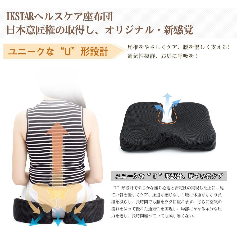 IKSTAR チェアパッド 低反発 椅子 クッション 裏面は滑り止め加工され 通気性 ブラック