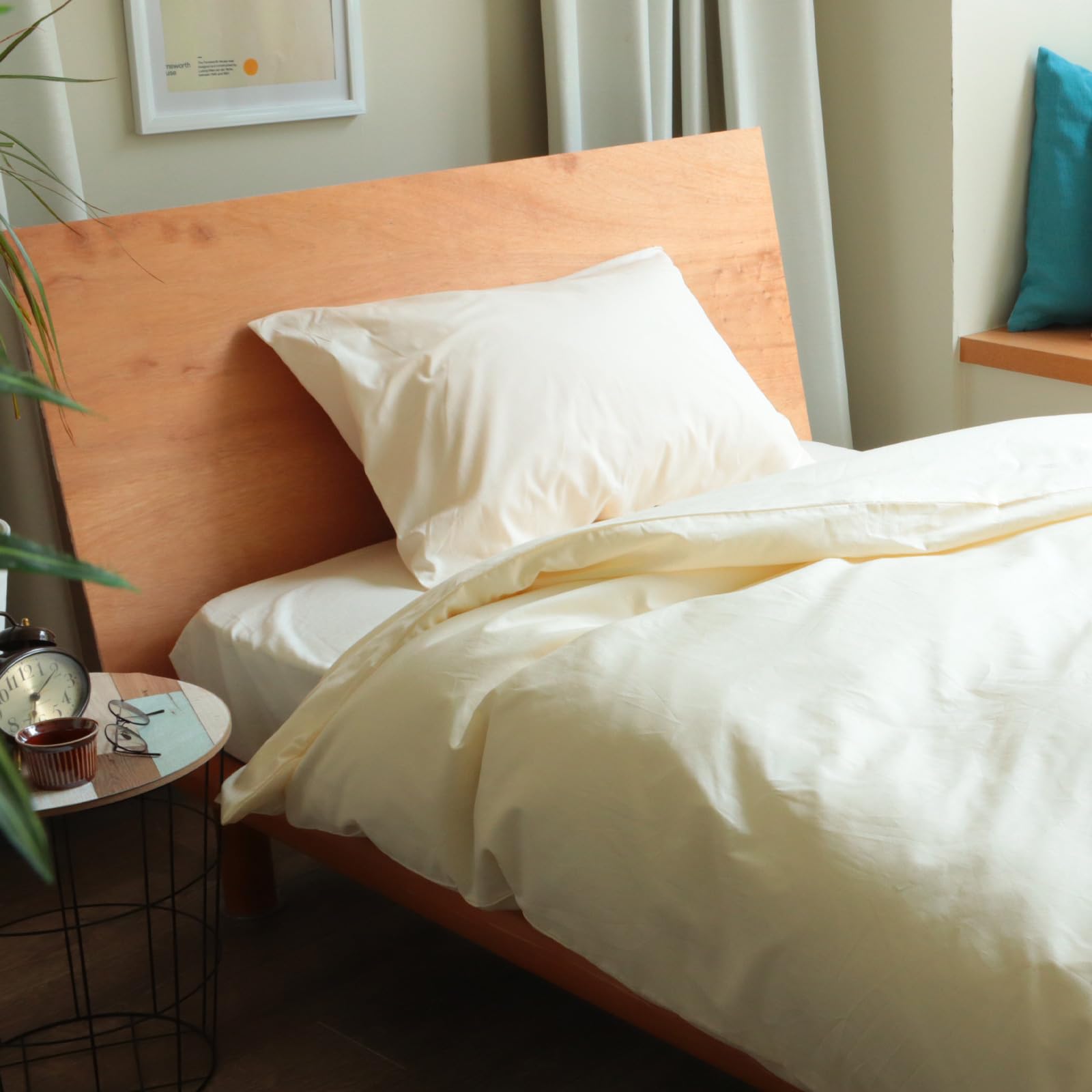 MORE 掛け布団カバー シングル 150x210cm 日本製 綿100% 無地 高密度200本 抗菌防臭加工 8ヶ所紐付き ホテル仕様 (シングル オフホワイト)