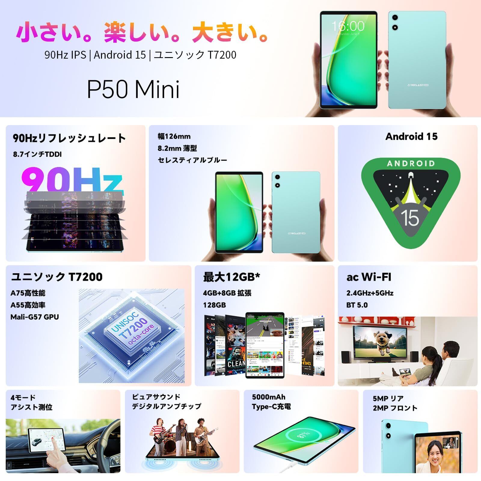 【在庫セール】【8 インチ タブレット 全新登場 TECLAST P50Mini Android 15 タブレット】90Hzの高リフレッシュレート、8.7インチ wi-fiモデル、12GB RAM+128GB+1TB 、8コア T7200 CPU、340g 超軽量、Widevine L1 Netflix対応+GMS+5G WIFI+5000mAh+BT5.0+GPS+OTG+無線投影、電子書籍向け | asaRulu0511