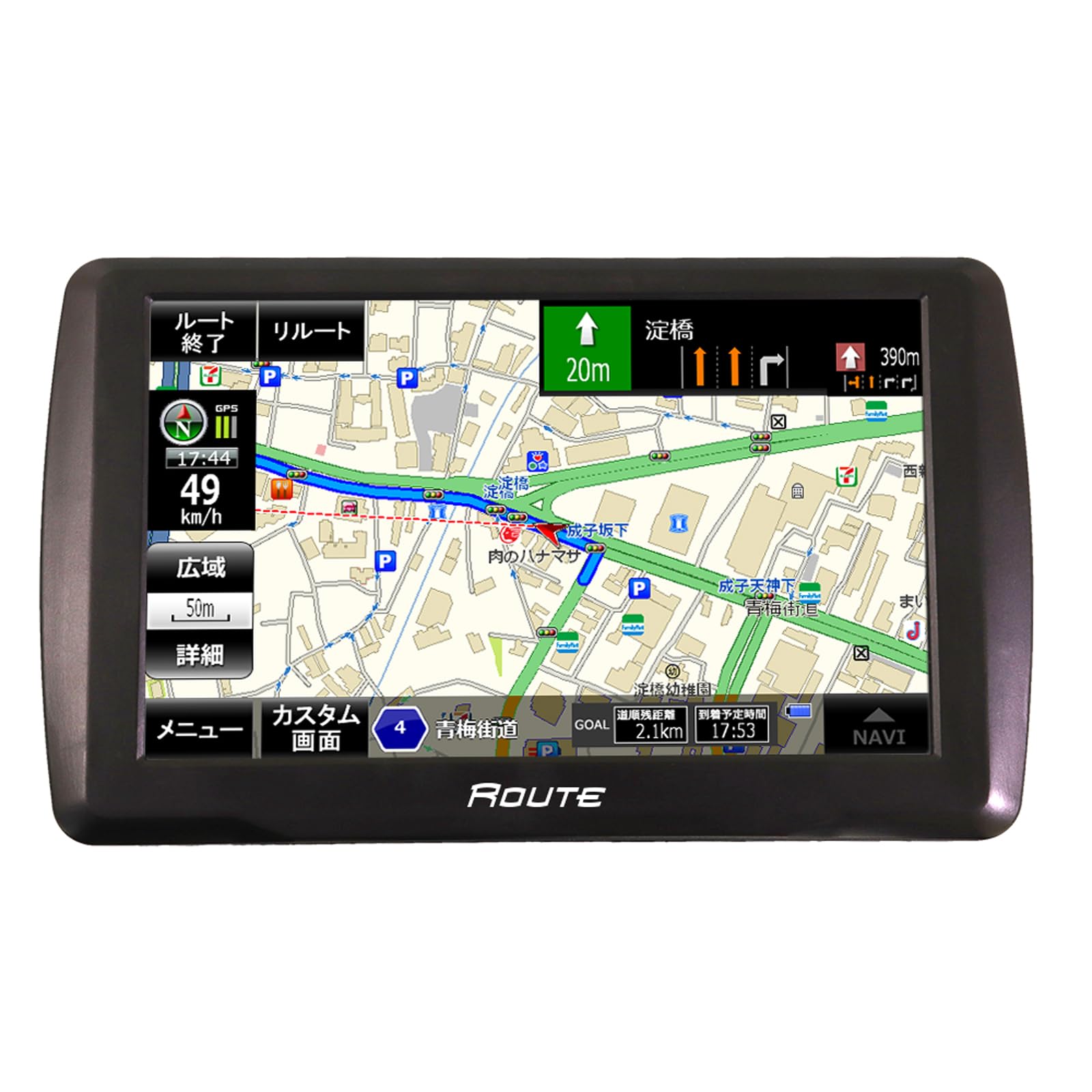 【操作しやすくルート案内時も分かりやすい画面表示】 5インチと小さな画面、操作しやすいようにボタンデザインやレイアウト。 右左折時には大きな矢印で分かりやすく案内。