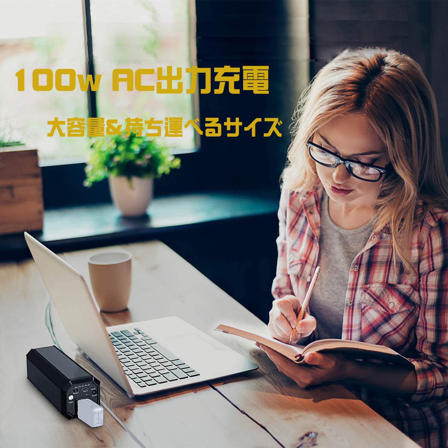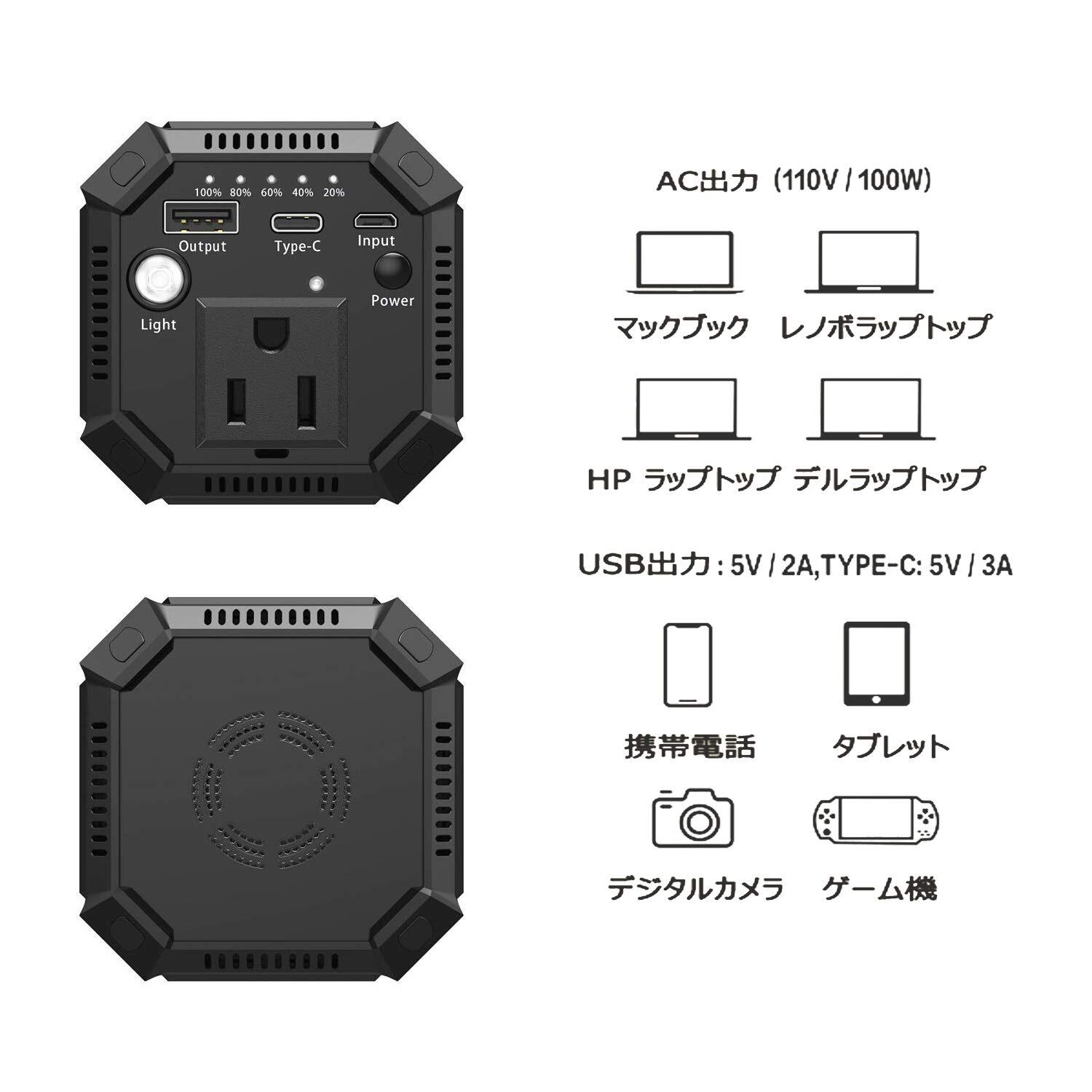 【複数充電可能】AC電源プラグを挿せて、110Vコンセントが使える、幅広い電気機器(3w-100w)へ給電できる。USBポート(5V/2.4A)+Type-Cポート(5V/3A)で様々なデバイスに充電可能です。スマホを約7-10回、ipad miniから約4回、ACコンセントからノートパソコンも約1.8回の充電ができます。旅行・移動中・緊急時のバックアップ電源として利用できます。