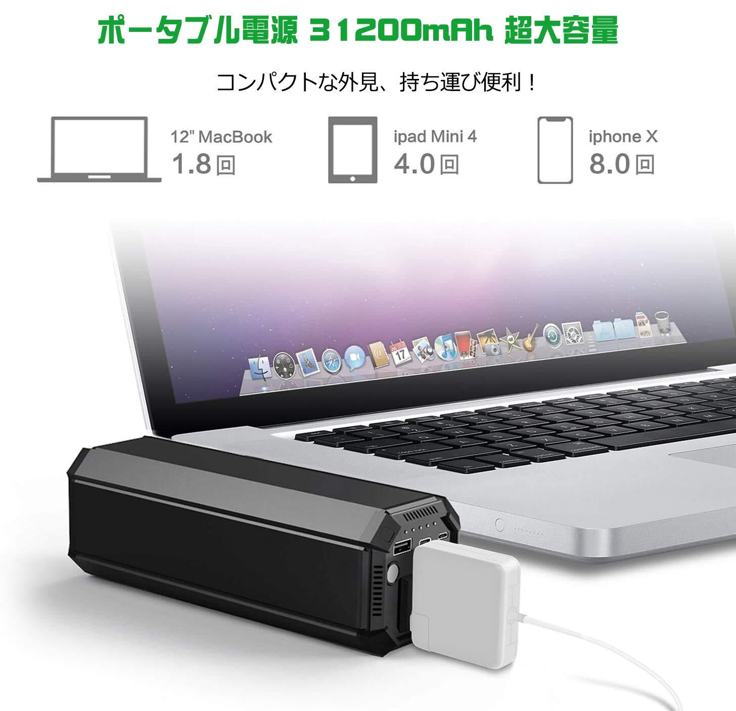 【大容量31,200mAh】他製品20400mAhよりもっと大容量31200mAhのバッテリー内蔵で、デバイスにはより長い航続能力が与えられます。EWEMOSIの31,200mA大容量により、外出するとき、いつでも手元のデバイスをフルチャージできます。ノートPC、タブレット、デジタルカメラ、スマートフォンを充電できるだけでなく、セキュリティカメラ、プロジェクター、LEDライトなど、より多くのUSB-Cデバイスと互換性があります。