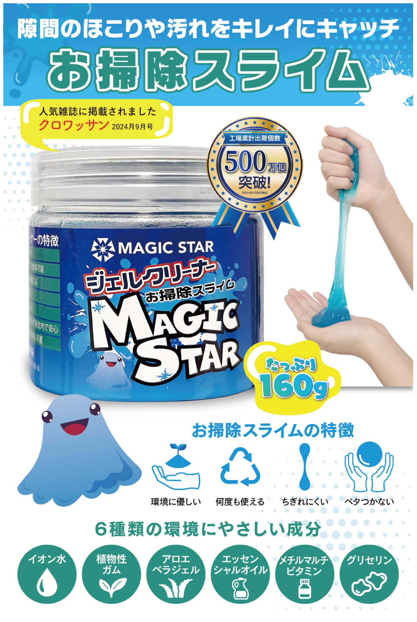 【雑誌掲載 掃除のプロ推薦】キーボード 掃除 スライム ジェルクリーナー 車 パソコン クリーナー ゴミ取り MAGIC STAR (青160g×1cup)