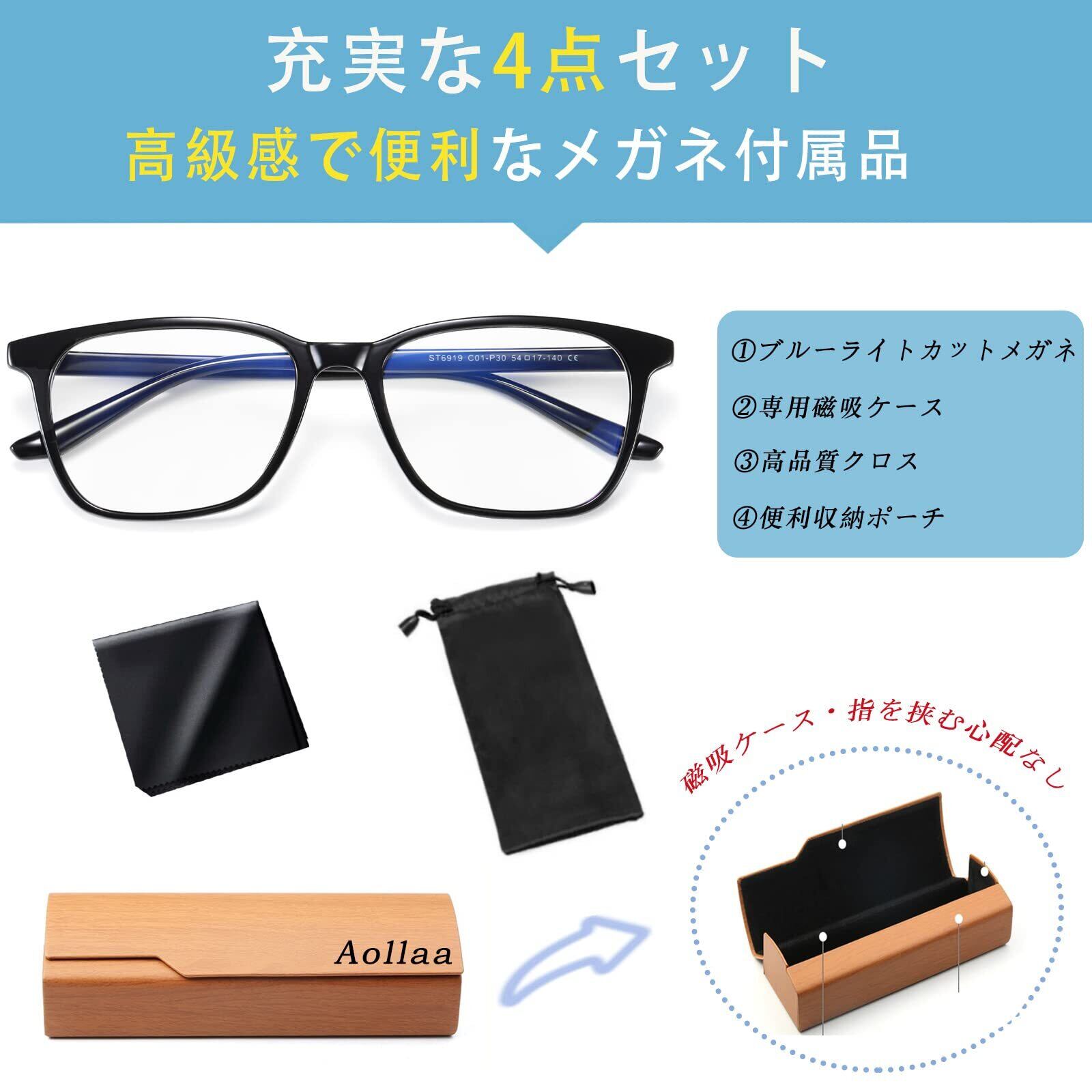 [Aollaa] ブルーライトカットメガネ だてめがね 度なし【TR90素材・軽量・UVカット・紫外線カット】 パソコン用 PC眼鏡 ゲーミングめがね 伊達メガネ メンズ レディース 黒縁ウェリントン 母の日プレゼント ギフト(ブラック)