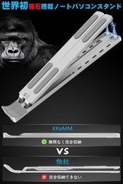 【世界初磁石内蔵&手首が当たりにくい】 KKaMM(カム) パソコン スタンドは世界初の磁石内蔵ノートpc スタンドです。よりスムーズに収納ができ、隙間なくよりコンパクトに収納できるpc スタンドです。他社のノートパソコン スタンドはホールダー先端の角度が高くかつシリコンは全面を覆っていないため、タイピングの際はストッパーの先端は手首に当たり痛いのですが、KKaMM ノート パソコンスタンドはストッパーの先端の角度と高さを最適化し、シリコンを縁まで覆っているため、手首の痛みを改善し、直接タイピングをしても快適に使用することができます。