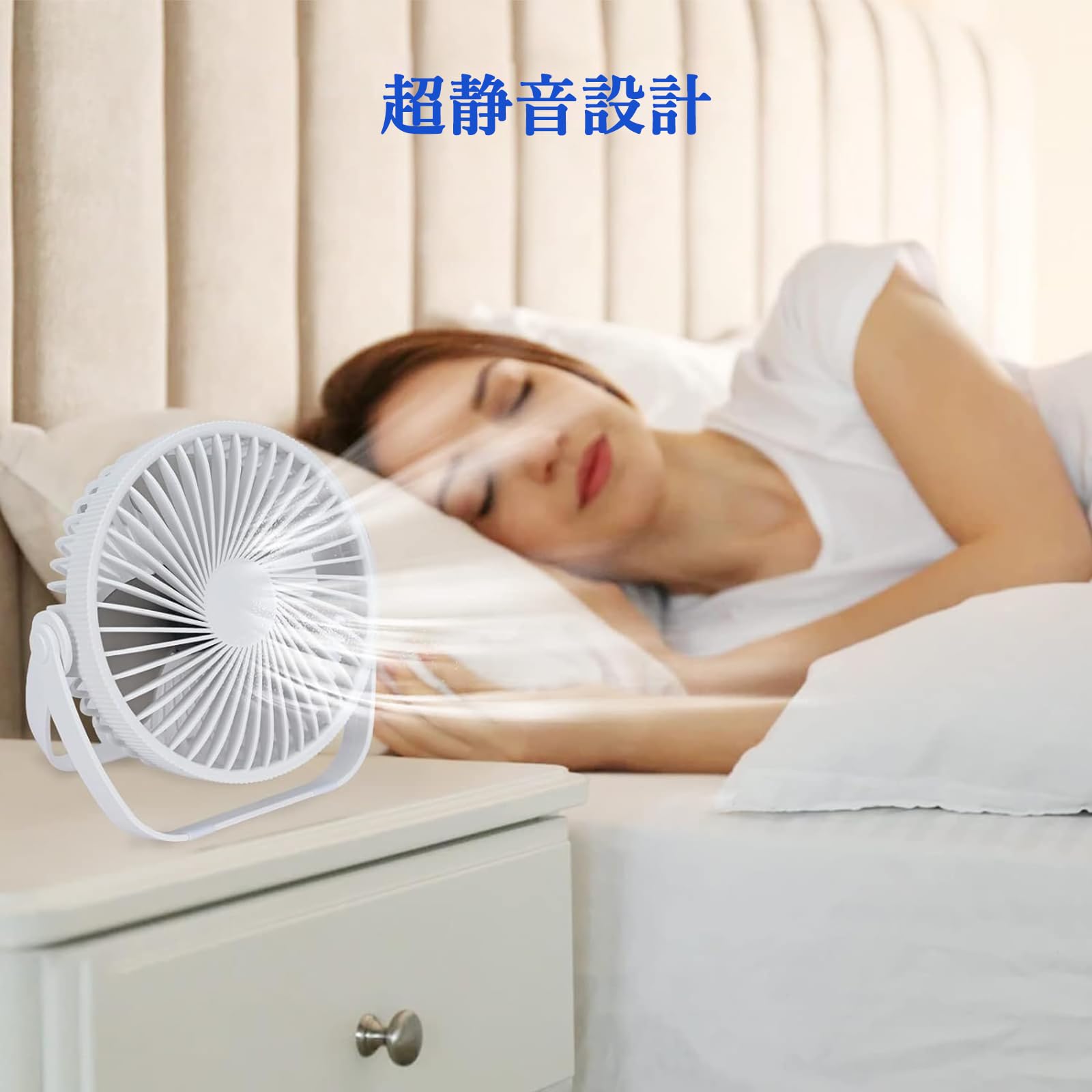 卓上扇風機 静音 USB扇風機 キャンプ扇風機 360度角度調整 3段階風量 パワフル送風 USB給電と充電式 TYPE-C デスクファン 吊り上げ ファン 熱中症対策 オフィス/家/学校/車/キッチン/アウトドアに適用 (ホワイト)
