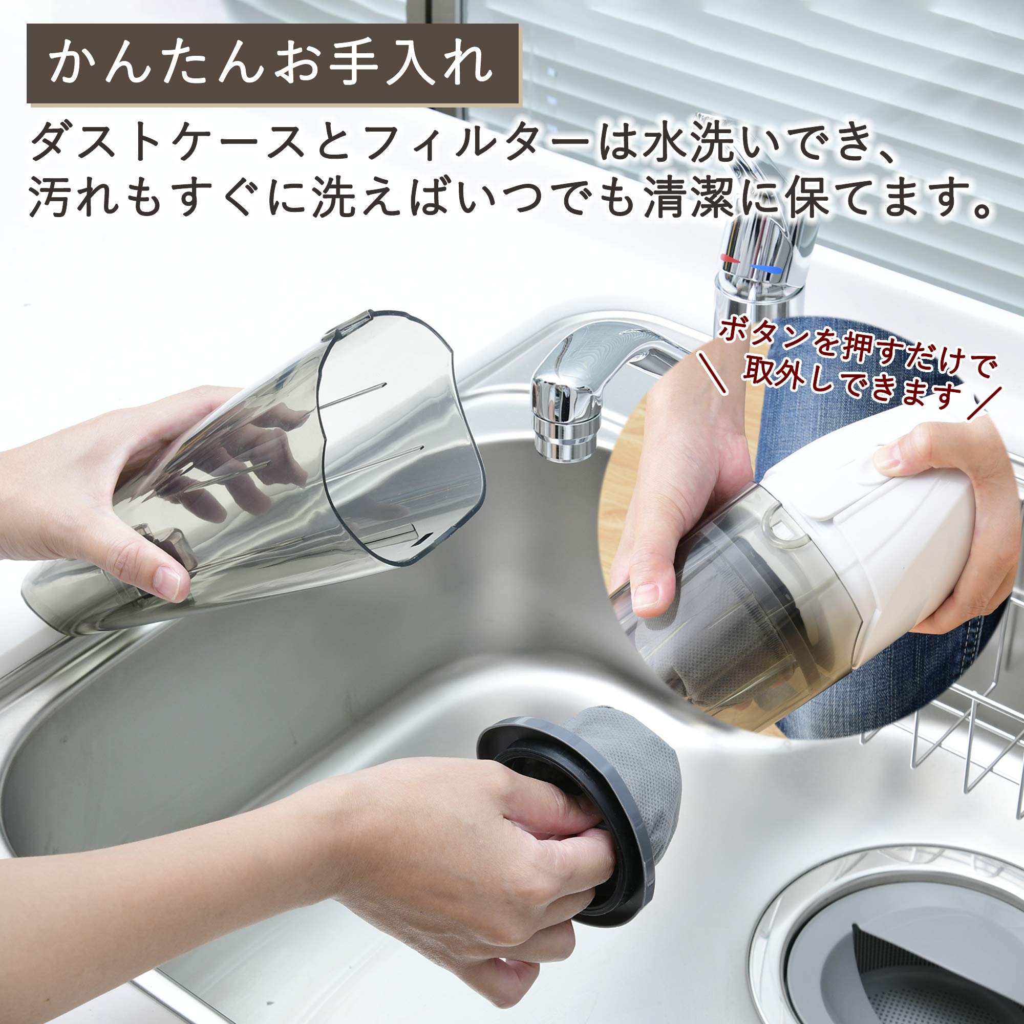●取り外したダストケースとフィルターは水洗い可能なので、しつこい汚れもすぐに洗うことでいつでも清潔に保てる。