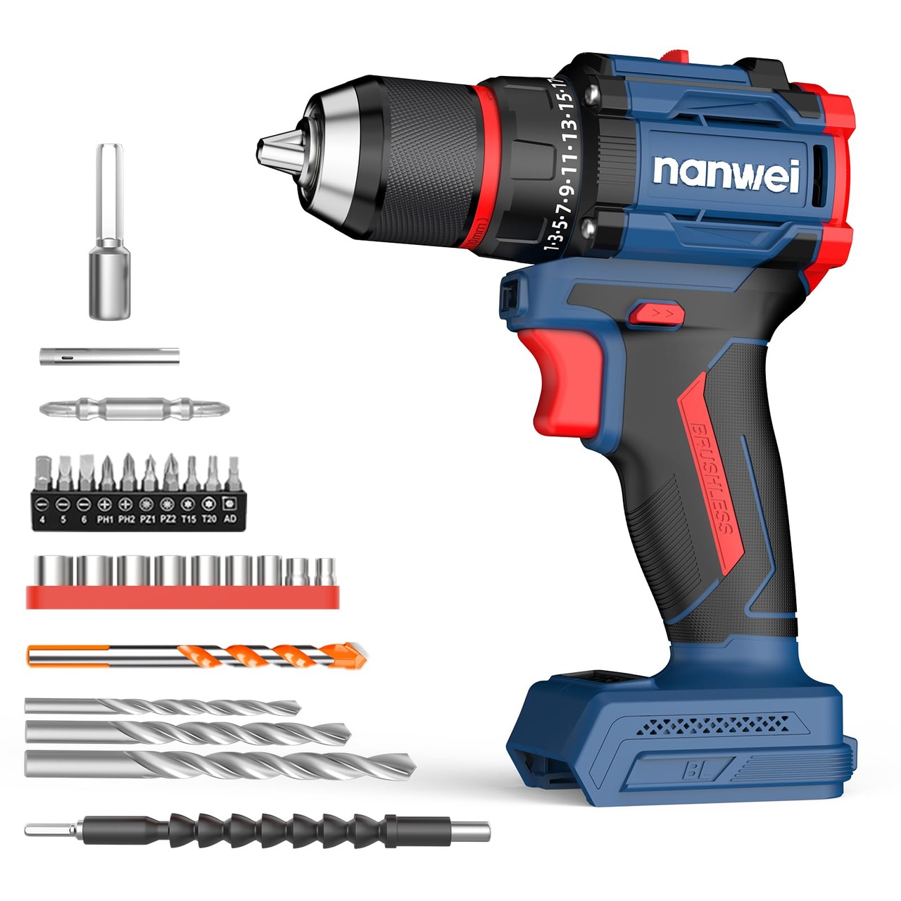 【在庫セール】NANWEI 電動ドライバー 充電式ドリルドライバー マキタバッテリー対応 最大50N·m ブラシレスモーター 21段階トルク調節 2スピードモード 無断変速 小型軽量 LEDライト 正逆転切替 ネジ締め/ネジ外し/穴あけ 本体のみ 【バッテリー・充電器別売り】 | asaRulu0511