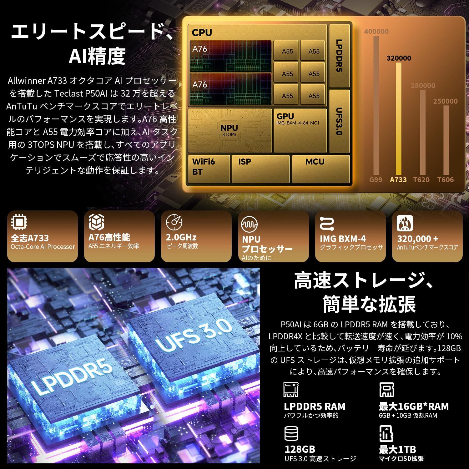 【2025新登場 タブレットAndroid 15】TECLAST P50 ai アンドロイド15 タブレット11インチ、AI機能+90Hzの高リフレッシュレート、7000mAh+フル機能タイプC、8コア CPU Widevine L1 対応、16GB+128GB+1TB拡張、WiFi 6+BT5.4+GMS、大画面 tablet