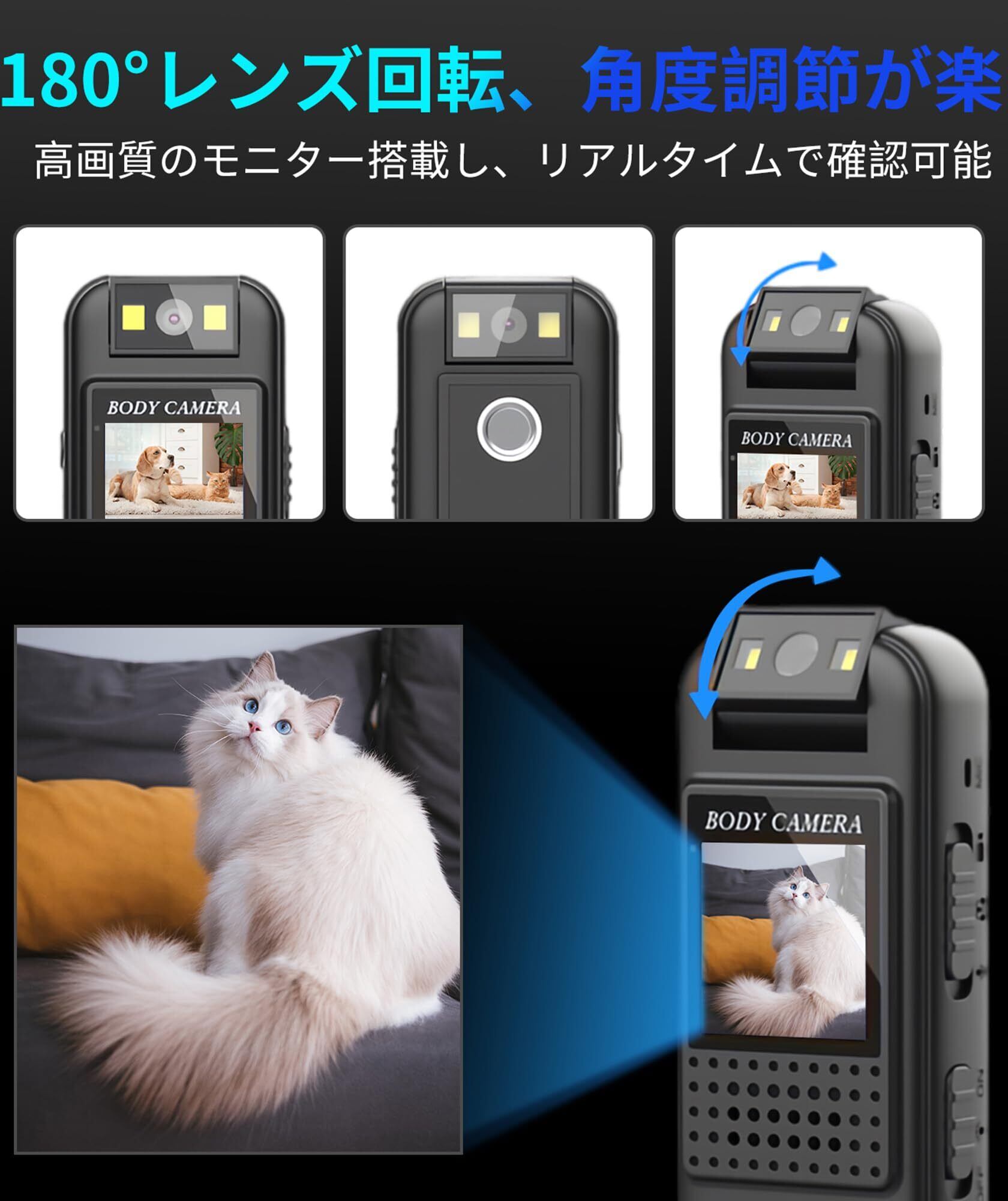 「180°回転式レンズ&夜間でも鮮明な撮影が可能」ウェアラブルとして使えるクリップ付きカメラは超軽量で約40gです。長時間身に着けていても重さを感じません。180度回転レンズで撮りたい角度に自由に向けられます。コンピューターに接続せずにビデオを再生、削除など操作することができます。会議中継やWEB会議、講演やセミナー、塾での講義の様子を撮影しておくのにもとても便利です!