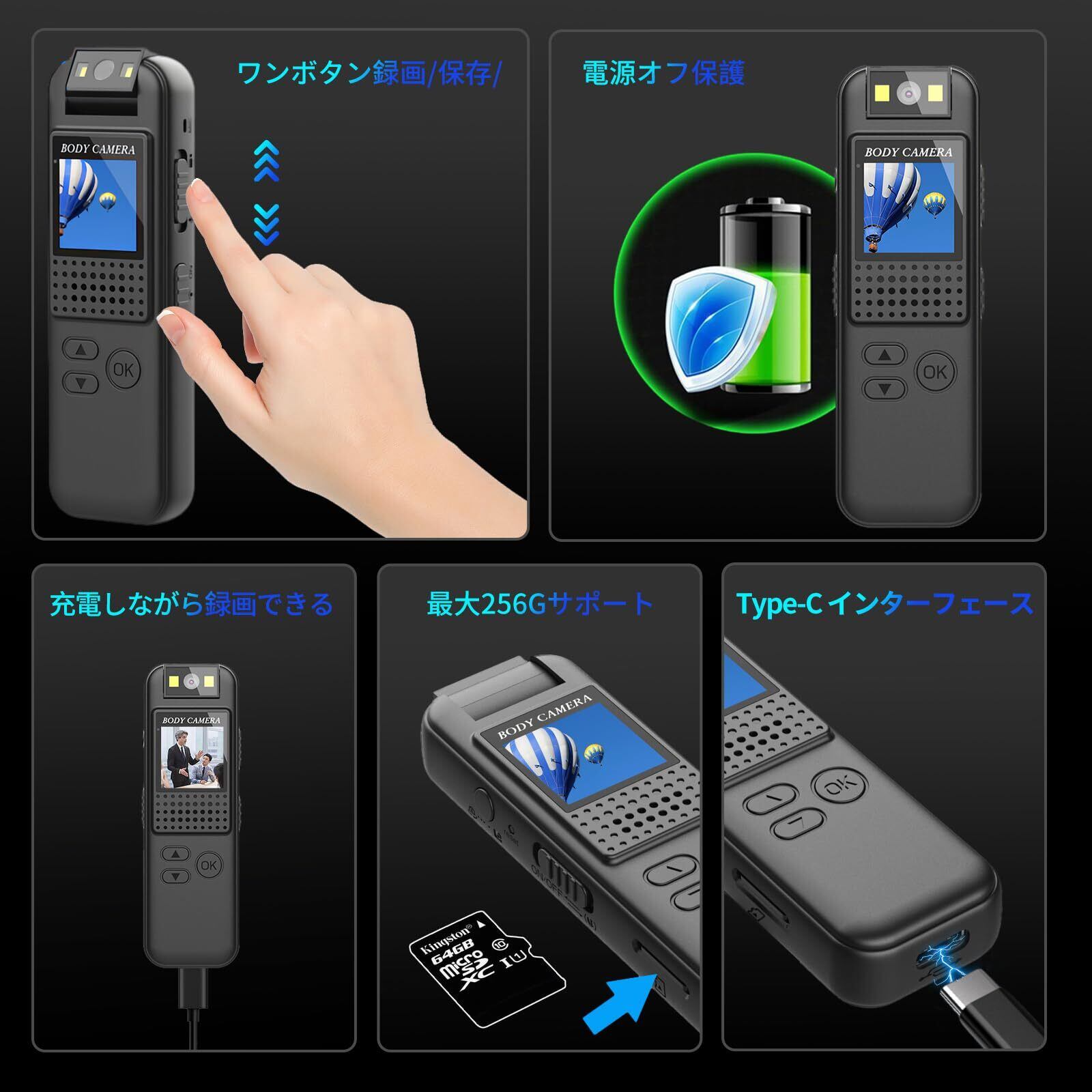 「動画撮影&静止画撮影&ボイスレコーダー3 in 1」プッシュだけで録画、録音、撮影を簡単に転換!フルハイビジョン1080Pで表示されたリアルタイム動画をそのままキャプチャ!0.8インチの高解像度液晶画面を搭載しており、モニターで確認しながら撮影できます。カメラは2個強力なLEDライトを備えており、どんな場所でも昼夜でもクリアな視覚体験を提供できます。