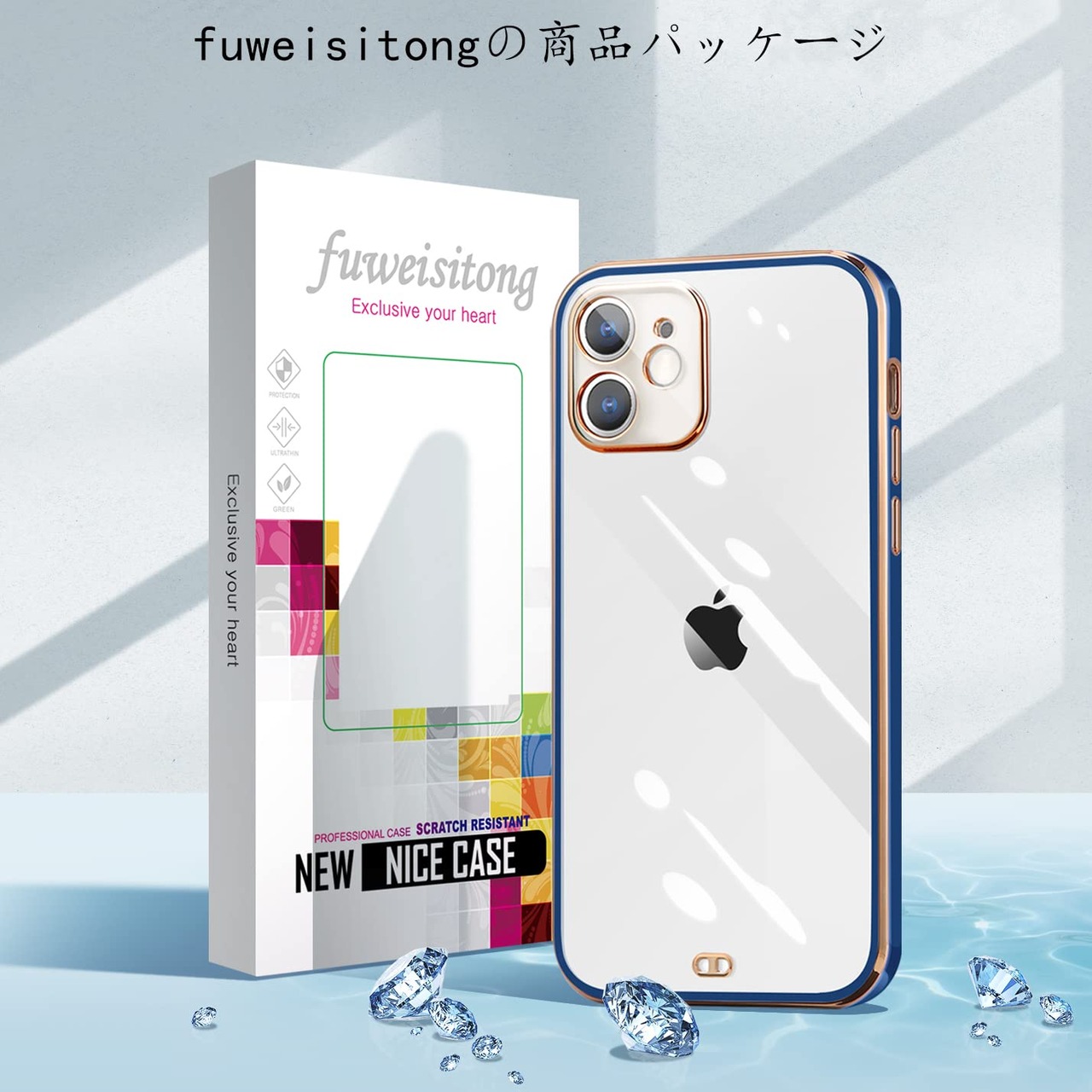 【新着商品】iPhone12 ケース クリア メッキ加工 耐衝撃 透明 TPU 落下防止 防塵 薄型 軽量 アイフォン12 カバー 変形防止 人気 おしゃれ (ネイビー・ブルー)