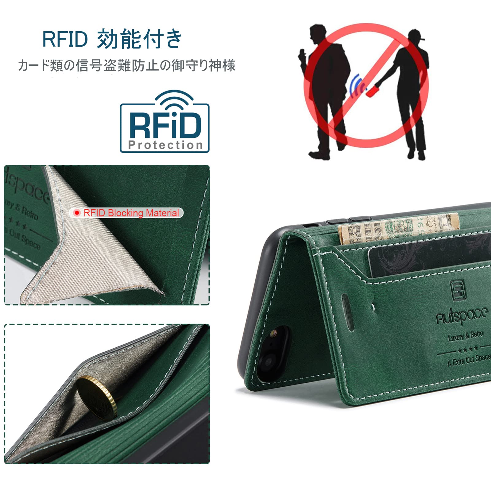 SENNWAK iPhone se2 ケース iPhone SE3ケース 手帳 iPhone se 2020 第二世代 ケース手帳型 iPhone6 保護ケース iPhone7 カバー iPhone8 手帳ケース case RFID磁気防止 スマホケース 携帯カバー 6s あいふぉん7手帳型ケース アイフォンse2 ケース 手帳型 肌感レザー カード収納 マグネット式 スタンド機能 【iPhone 8 / 7 / 6 / 6s / SE2(SE 第2世代) /SE3(SE 第3世代)通用 4.7inch対応】レトログリーン