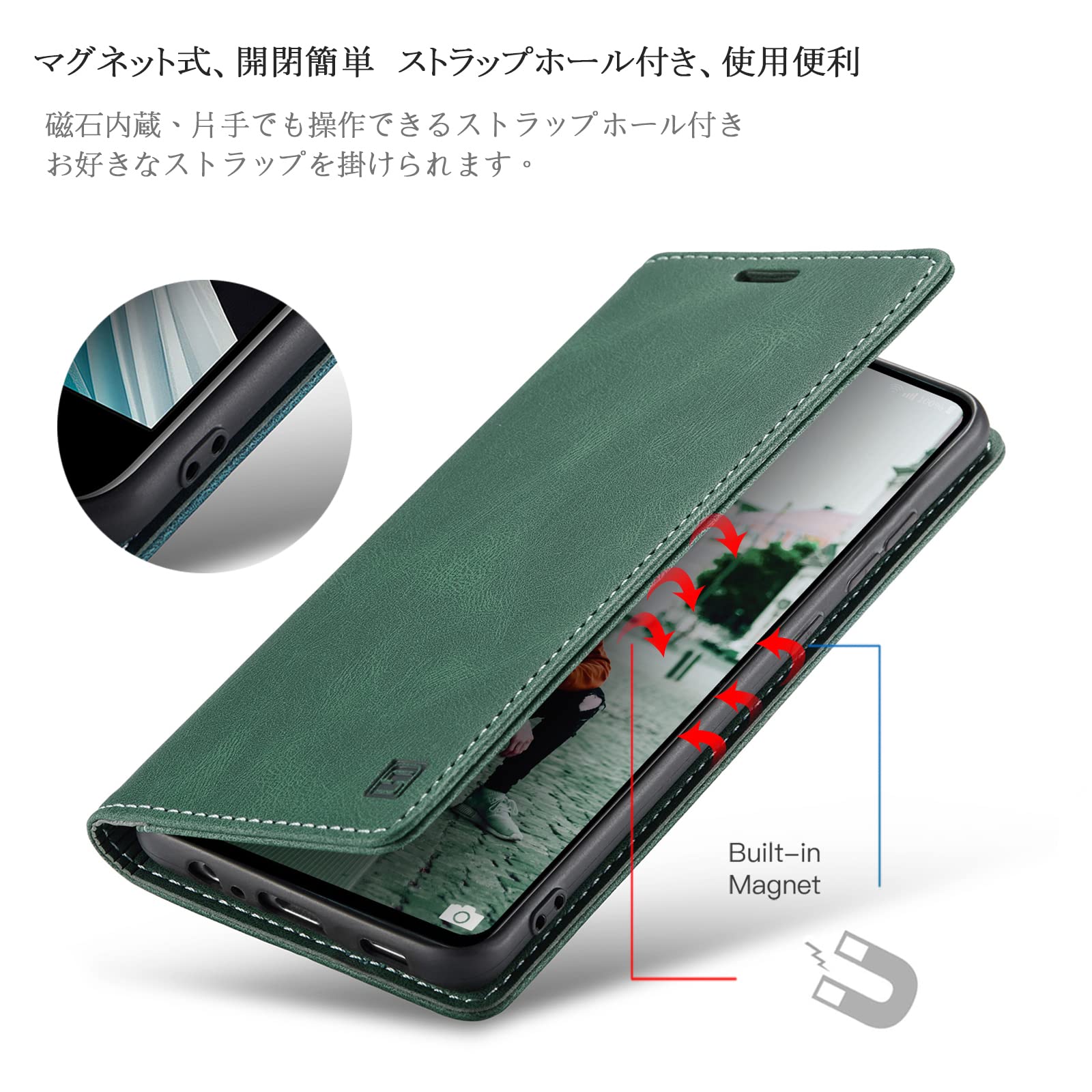 【磁気防止RFID功能 &機能性 4in1】磁気カードを保護するために磁器遮断功能があり、スキミング防止、不正アクセスから大切なクレジットカード、キャッシュカード、IDカードなどの個人情報を守れるRFIDスキミング防止の機能も備えています;①横置きスタンド機能:動画視聴でも手に持つ必要がなく、超楽々動画視聴が可能です;②財布型:ケースの裏側に一つのカードポケットとお札入れのフリーポケット一つあり、ショップでのポイントカード、交通機関でのスムーズな移動をサポートでき、 SUICA / PASMO / ポイントカード / メモ 等収納でき、ちょっととしたお出かけてもこれで十分です;③留め具なし、マグネット内蔵 ベルトなし、片手でも簡単操作できる;④ストラップホールはTPUケースの右下にあり、お好きなストラップを使用し、生活にもっと便利になり、または各種ボタンの使用、カメラ撮影、スピーカーホール等、すべての機能もそのまま立て掛けて稼働します;