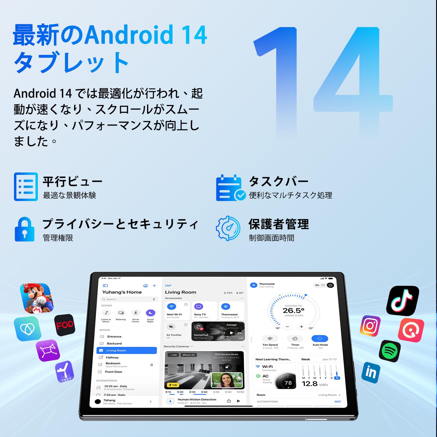 2025 最新 Android 14 タブレット - 最新の Android 14 OS は、速度、セキュリティ、ユーザー エクスペリエンスの大幅なアップグレードを実現します。Android 14 タブレットには、パフォーマンスと効率性、予測機能の強化、マルチタスク機能の最適化、全体的な使いやすさとカスタマイズ オプションを強化する洗練されたユーザー インターフェースが含まれています。Android 14 タブレットは Play ストアによって認定されており、Play ストアのアプリはすべて簡単に入手できます。