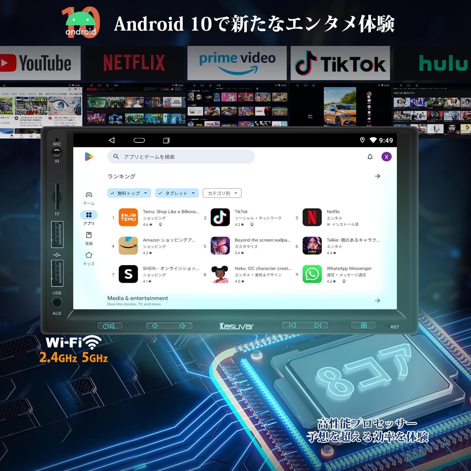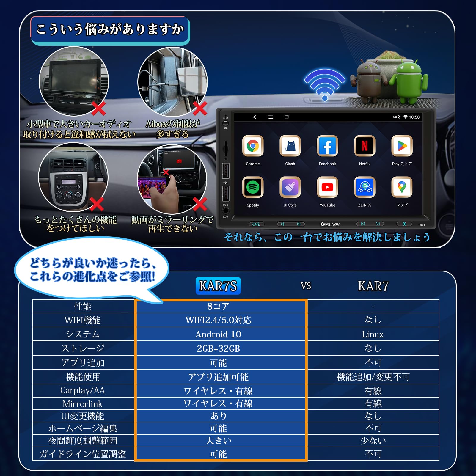 【在庫処分】KASUVAR 2DIN7インチディスプレイオーディオ Androidカーナビ 【8コア2GB+32GB WiFi対応でYouTube/Netflix/Hulu等観れるカーオーディオ】ワイヤレスCarPlay/AndroidAuto&ミラーリング 映像出入力対応 Bluetooth/DSP/GPS/FM/AM対応 USB/SD再生 バックカメラ連動 二分割画面 技適取得済み【KAR7S】 | asaRulu0511