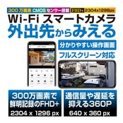 外出先からスマホで映像を確認できる、首振タイプの防水対応スマートカメラ。