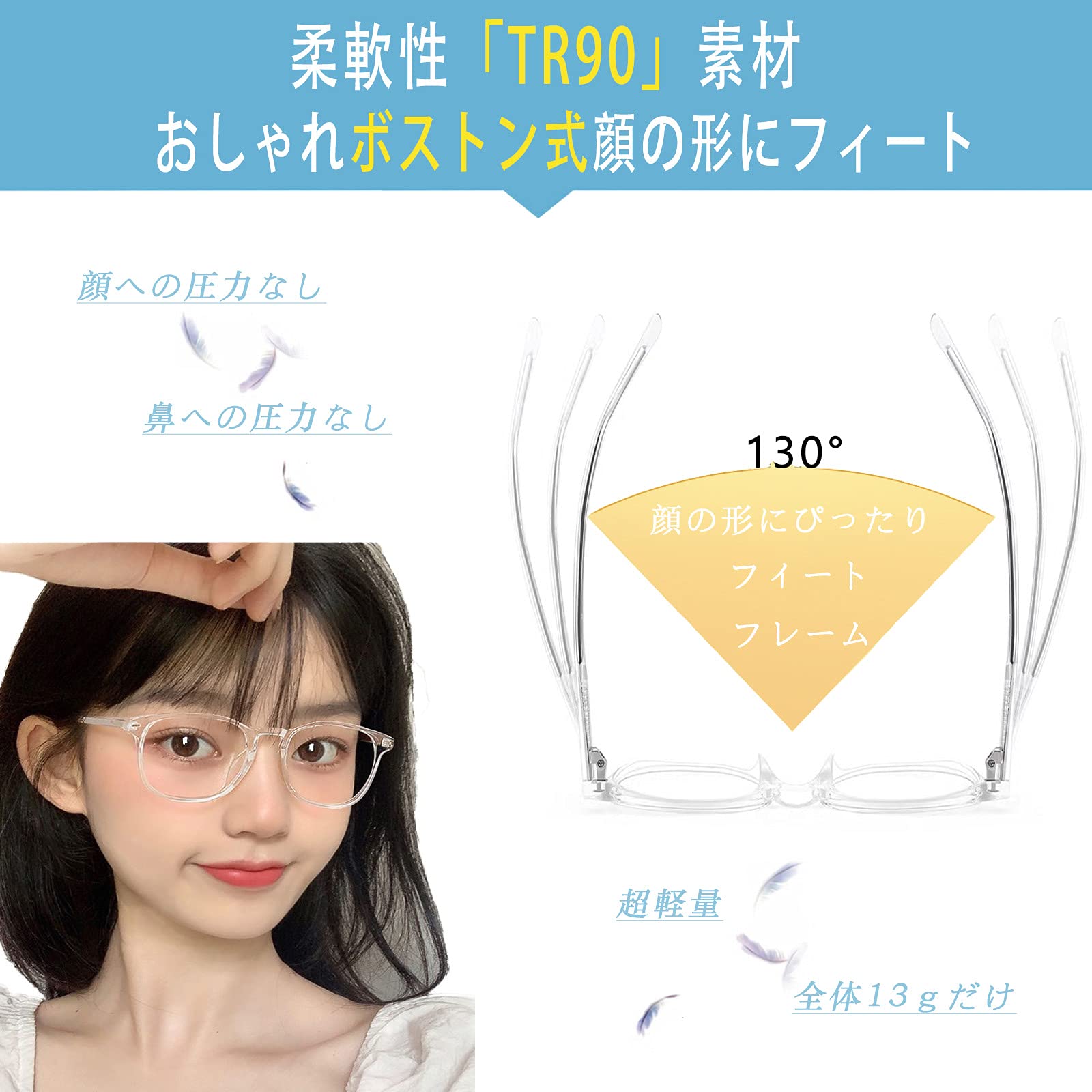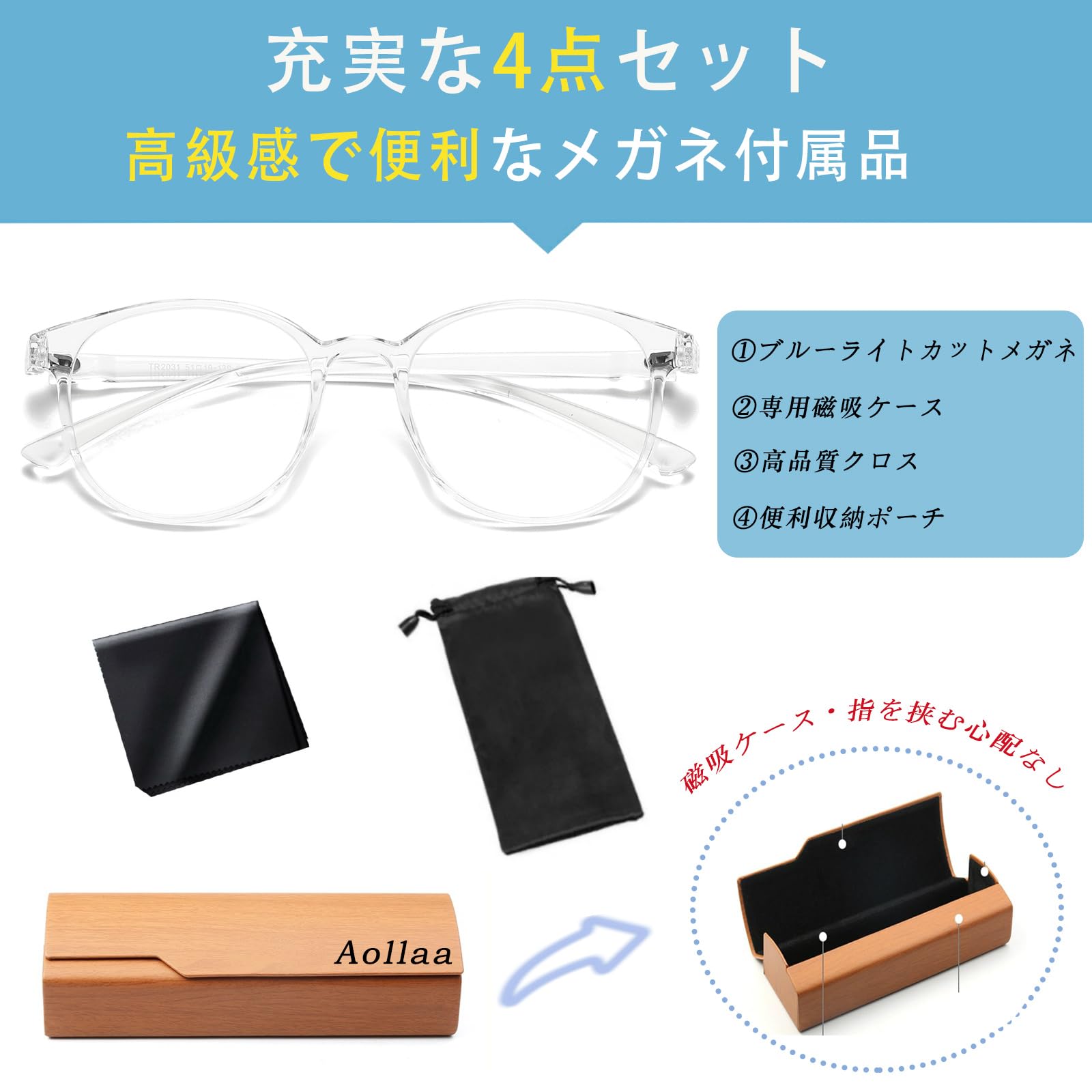 [Aollaa] 【TR90素材・軽量快適】ブルーライトカット眼鏡 伊達メガネ 度なしわずか 10g【紫外線カット& uvカット】パソコン用pcめがね だてめがね メンズ レディース 学生 子供 丸メガネ ボストン 母の日プレゼント ギフト(クリア)