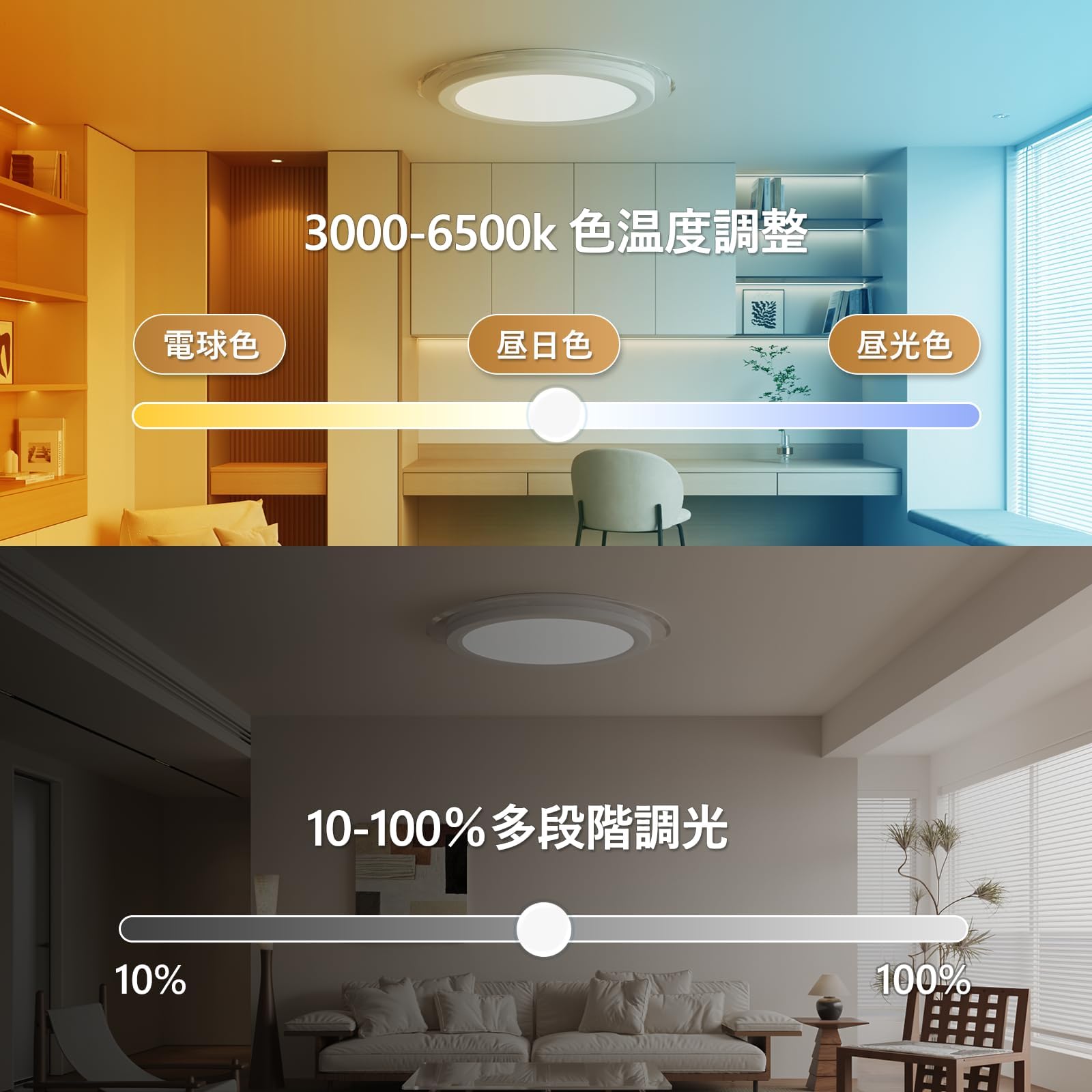 【色温度と明るさカスタマイズ可能、メモリ機能付き】この照明機器は20段階明るさ調整と12段階色温度調整ができ、スマートメモリ機能で前回設定を記憶し、手間なく好みの照明環境を再現できます。常夜灯モードや調光、色温度調整も自在で、部屋用途、時間帯や気分に合わせた最適照明を提供します。