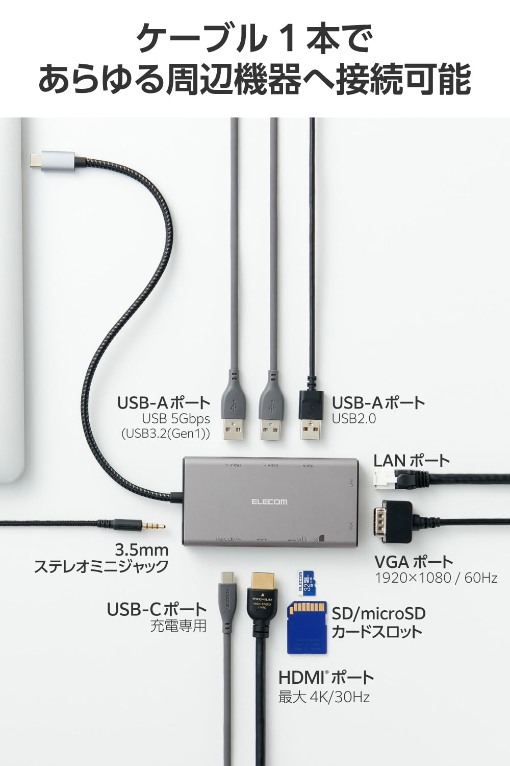 ■カードリーダー(ダウンストリーム):2:microSDカードスロット×1 ※microSD/microSDHC/microSDXC